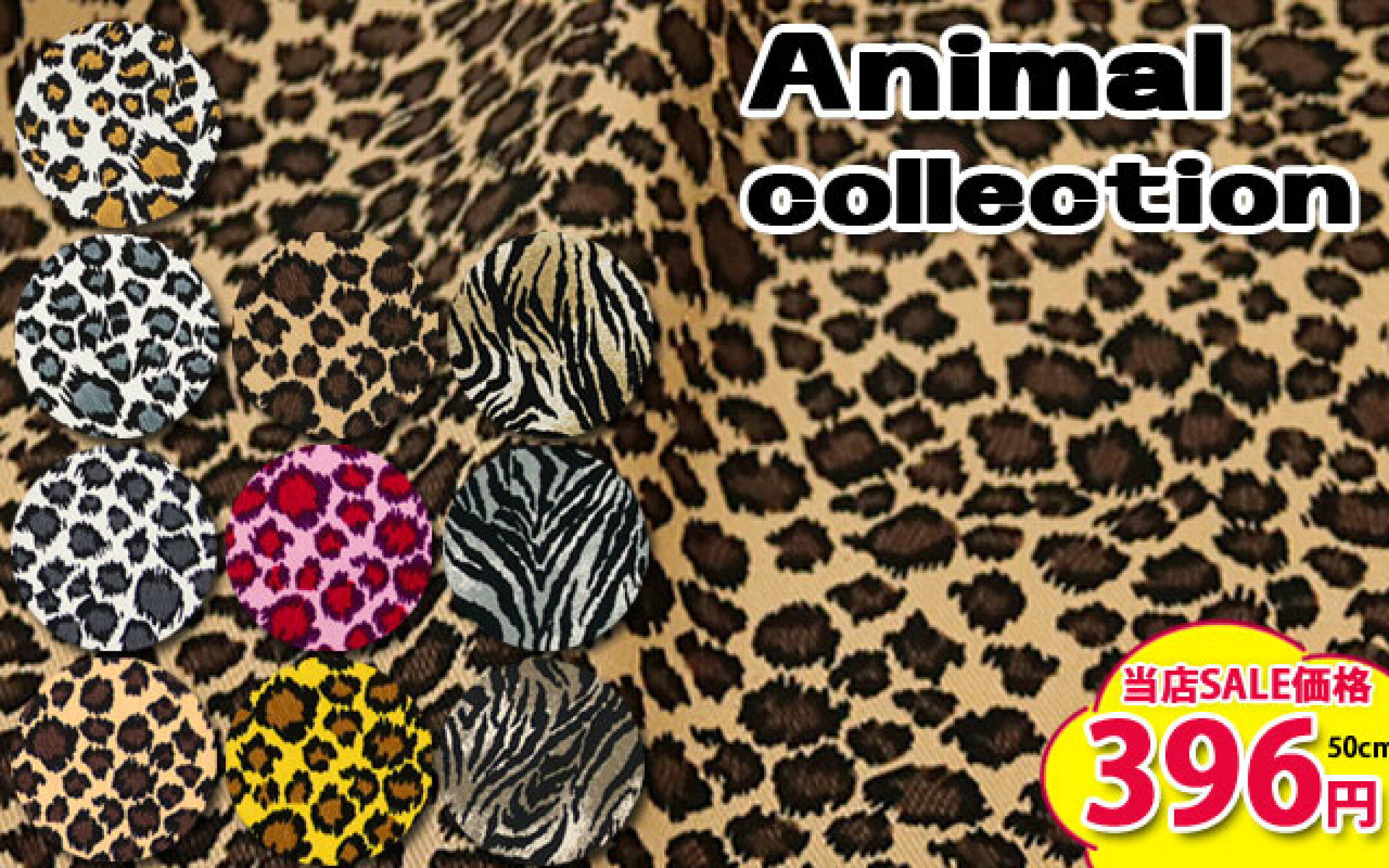 Animal collection メルマガ商品 ツイル生地 レオパード ヒョウ タイガー アニマル バッグ ポーチ ハンドメイド 手芸 裁縫 布地 50cm単位