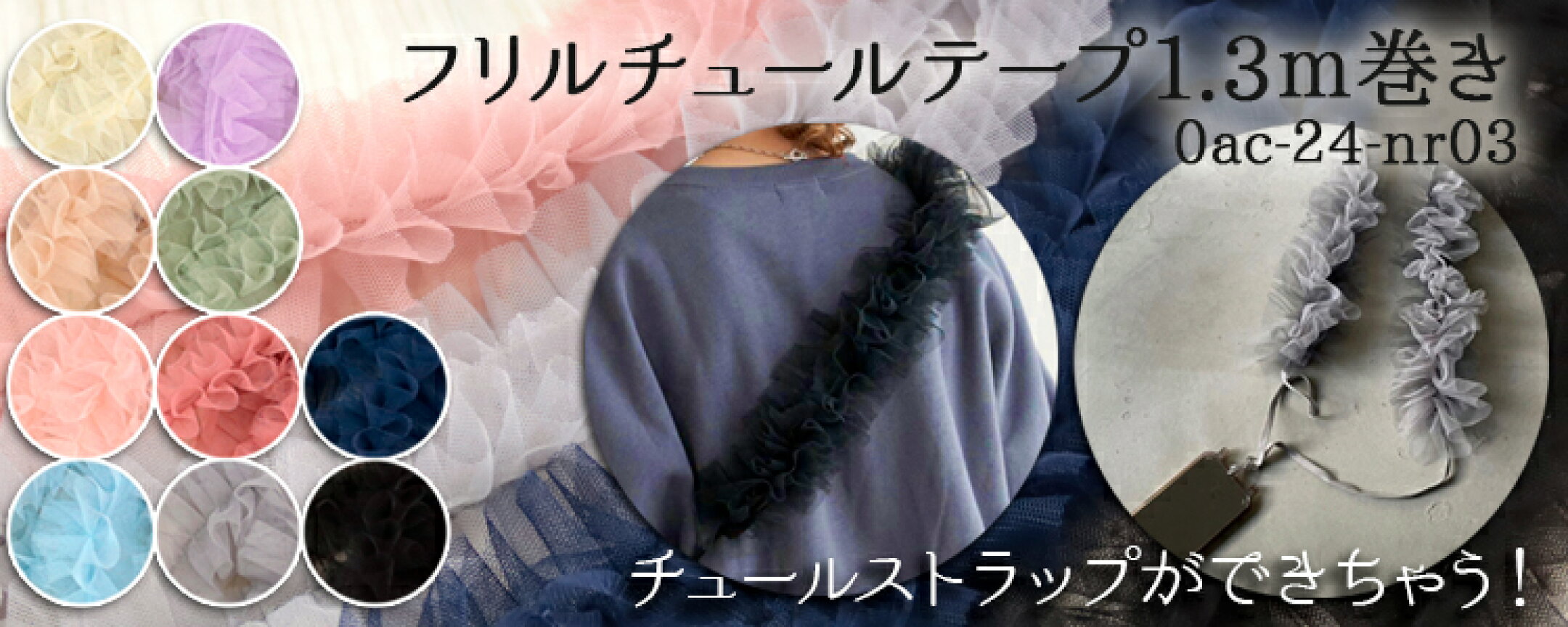 ドット フリルチュールテープ 1.3m巻き チュールテープ チュール テープ デコレーション かわいい フリル 個数単位