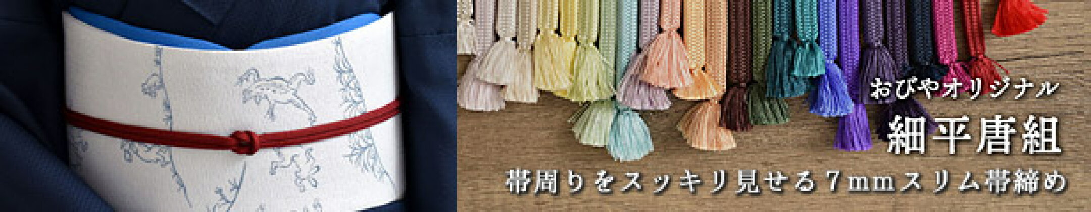 7mm帯締め 細平唐組 帯締め 京都老舗 帯締機屋 謹製 草木染7色 国産 正絹 スリム 長尺168cm おびやオリジナル / 名古屋帯・博多帯が充実!帯専門店おびや】送料無料 [商品番号:14945]
