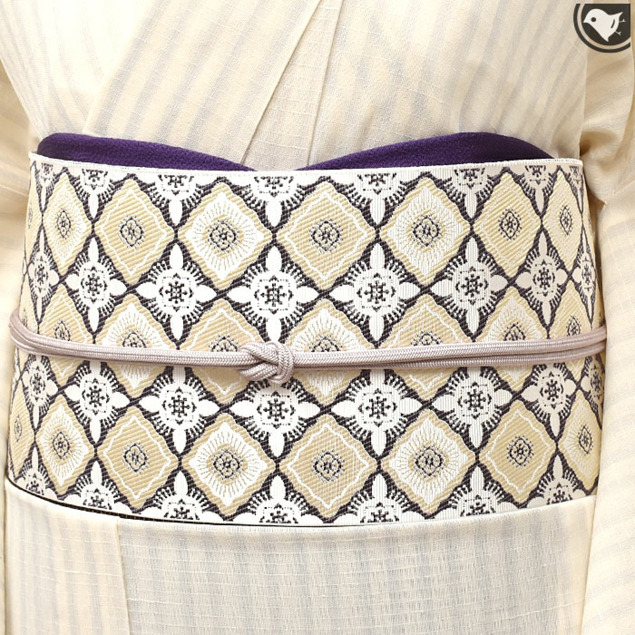博多織の老舗、松装織物さんの人気シリーズ 「繧繝霞」(うんげんがすみ) こちらの繧繝霞は、同系色のいい感じの配色を大きな交差になるように織られているのですが、角度によって見える色が変わる表情豊かな帯です。 また、使いやすいポイントとしては、角度によって見える色がかわるので「玉虫」と呼ばれていますが、いわゆる玉虫のメタリック感は少なく、自然なニュアンスカラーで現代的ですので、シックな装いにぴったりです。 同系色の模様なので、ほぼ無地のようであり、でも無地ではない面白さを出せる、合わせやすいし、きちんと個性もだせます。 あと、オールシーズンという「季節問わず」です。 アップの画像では結構隙間が見えると思いますが、その分軽いし涼しいですが、いわゆる<夏物>よりもすこし厚めで密です。 これからの時期に、少し渋めお色味の「繧繝霞」は機能的にも季節の移行期としてもとってもおススメです! 夏物の小物に合わせたものと、通常用の小物を合わせてみています ▼コーデ使用小物