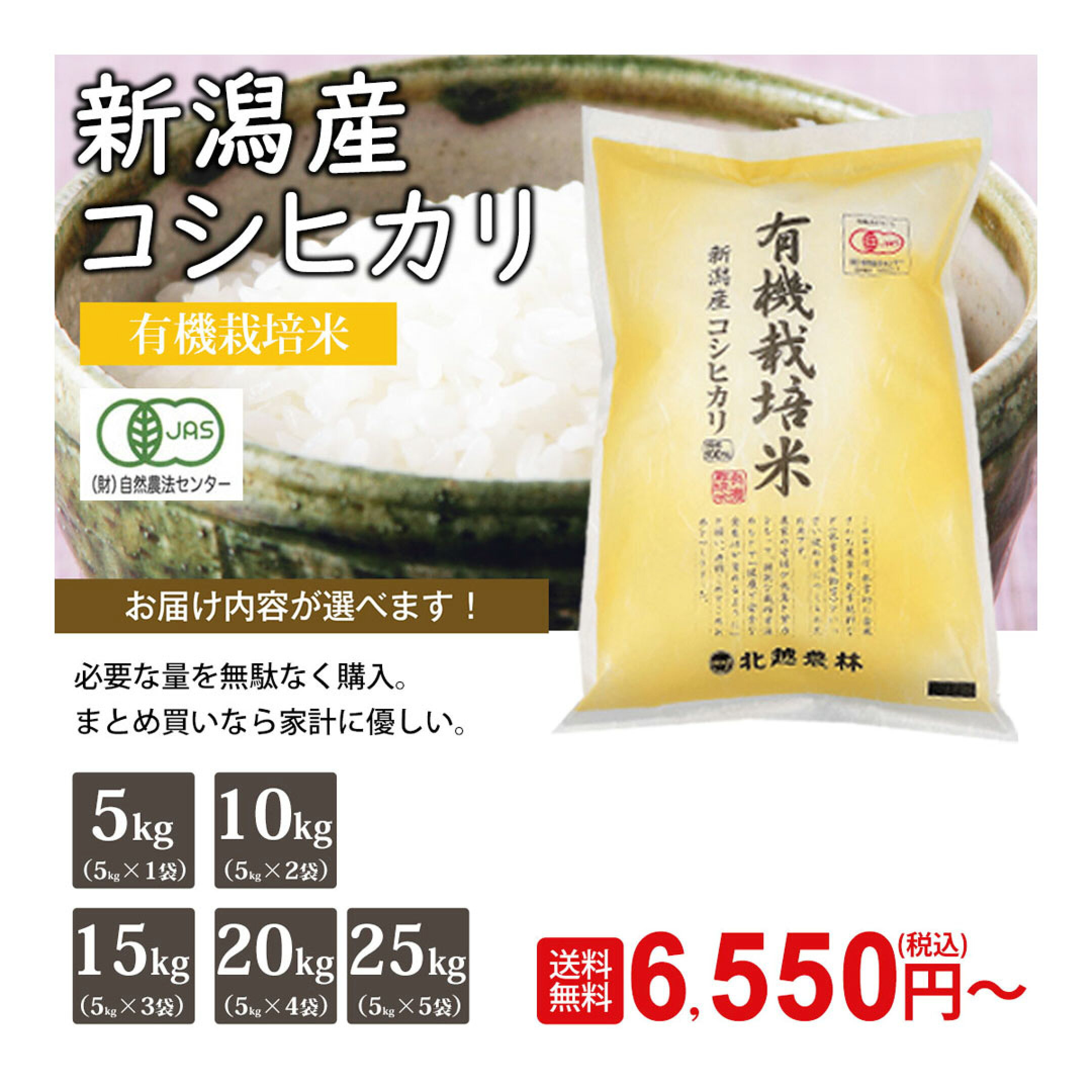 【2個購入で1100円お得】新潟産コシヒカリ有機栽培米5kg 10kg 15kg 20kg 25kg ※真空パック選べます(密封新鮮パック)令和7年産 米 送料無料 無農薬 有機栽培 有機JAS認証 こしひかり 新潟 白米 精米 北越農林 取り置きOK 精米仕立て