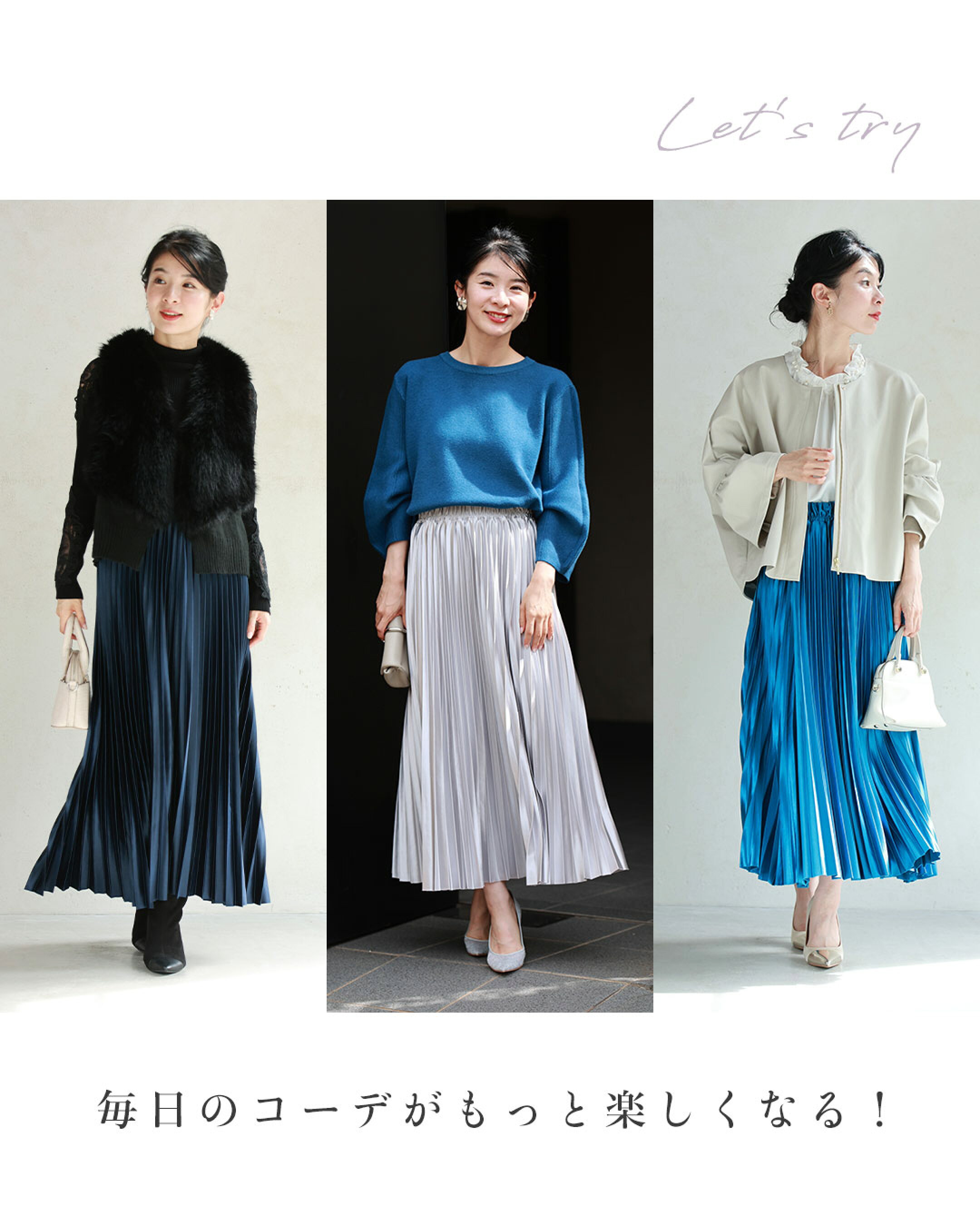 ▽ こんなお悩みを解決したい ▽ リアルなお声: 「脚のラインが出ないスカートやパンツを探してる…」 「できればオシャレに、後ろ姿をすっきり見せたい。」 太ももやふくらはぎなど、脚のラインは人によって気になる部分が異なります。そこで活躍するのが、【脚カバー】効果のあるプリーツスカートやワイドパンツ。 縦ラインのプリーツは脚長効果もあって、揺れるたびに美脚見えを演出。ロング丈スカートは足元までカバーしながら上品な印象へ。