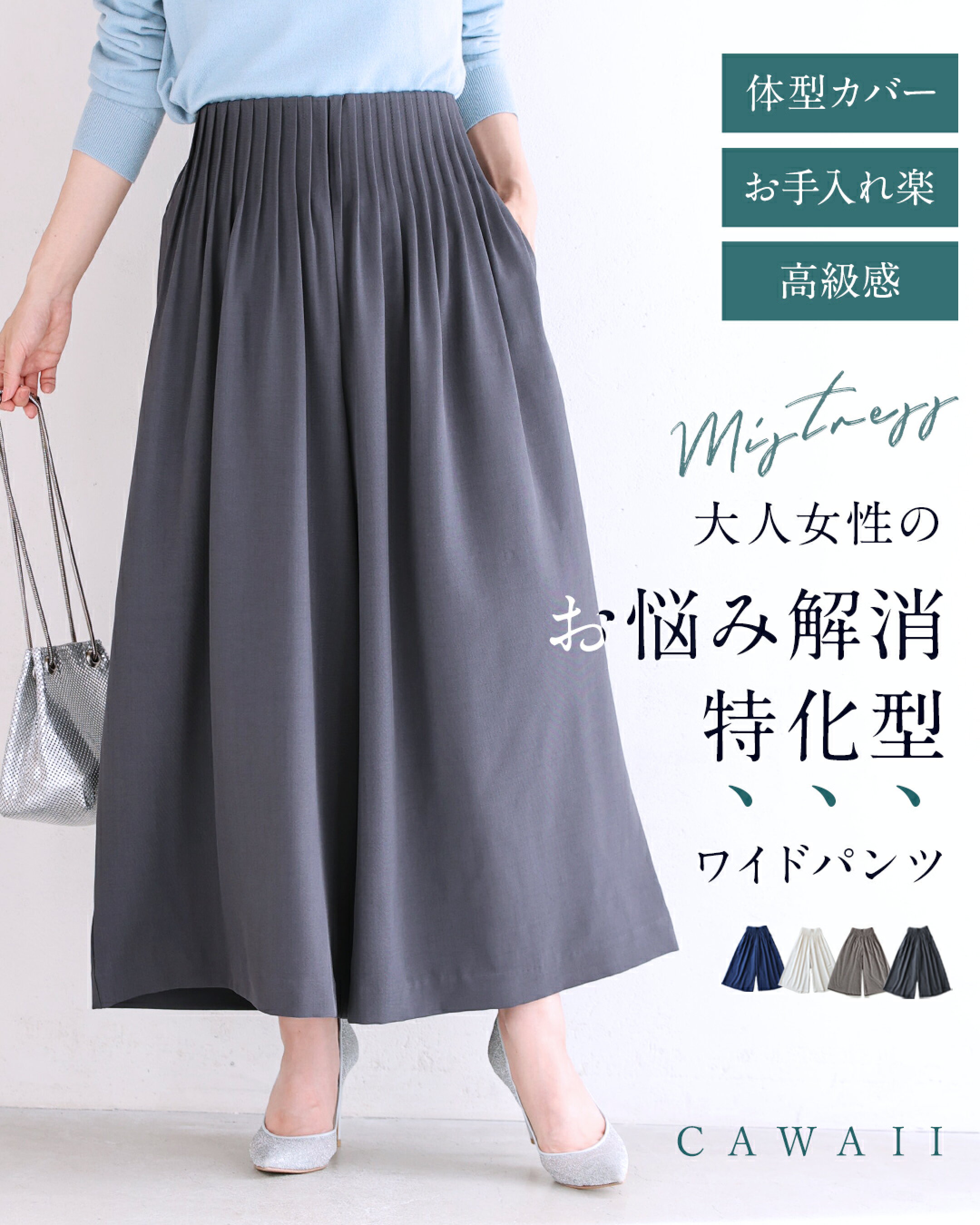 お腹・二の腕・お尻・脚のお悩みを解決するアイテムは他にもたくさんございます。 「体型カバー」を、隠すためだけではなく “もっとおしゃれを楽しむ工夫”へと繋げたくて。 これからもCAWAIIは、そのお悩みに寄り添い、 あなたの毎日を素敵に彩る「体型カバーアイテム」をご提案し続けます。