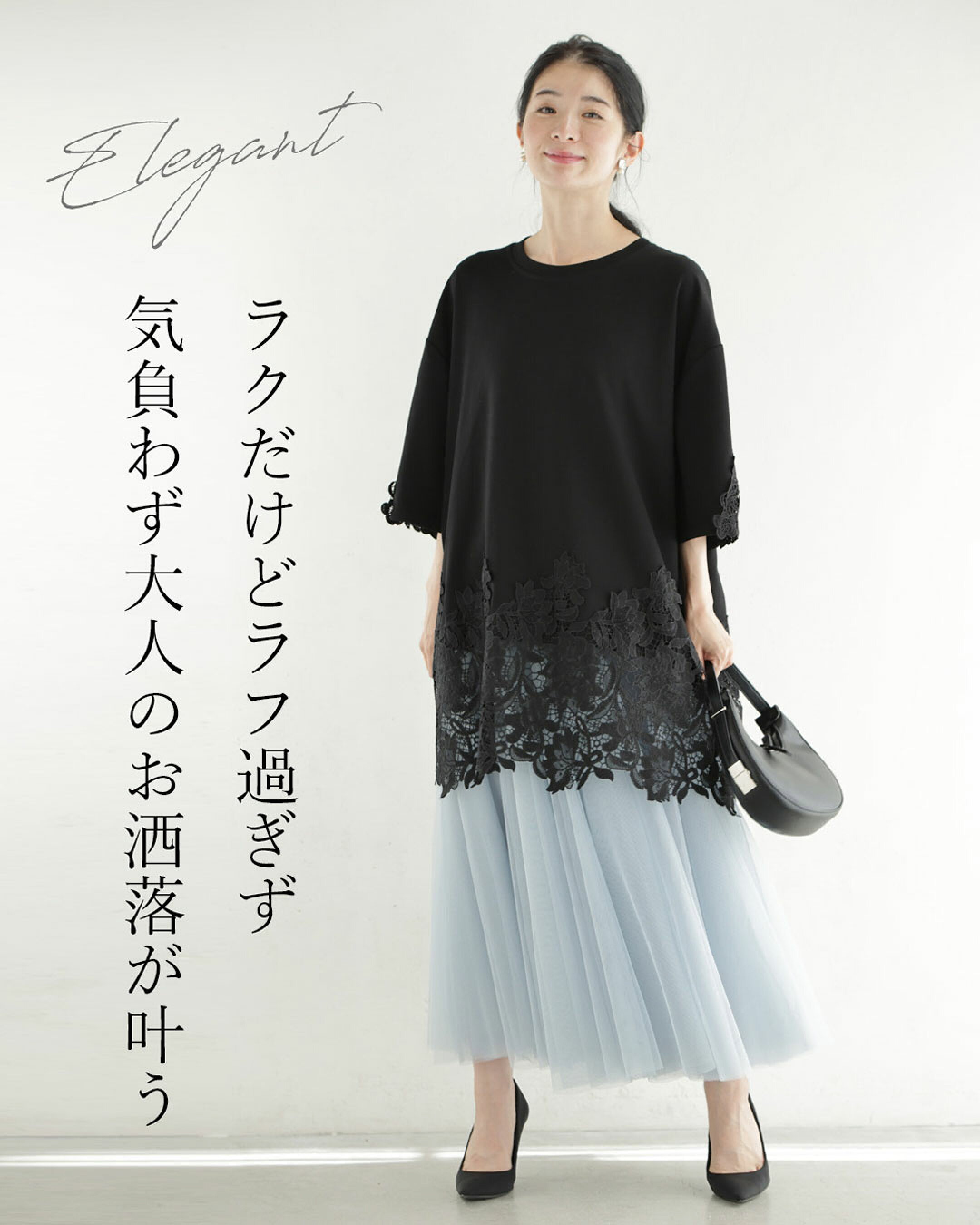鏡に映るとき、写真に残るとき ──ふと気になる“あの部分” 183名のお客さまの声を集めた独自アンケートで、多く寄せられたのは【お腹・二の腕・お尻・脚】のお悩みでした。 そこで今回は、大人女性のために【体型カバー】と【おしゃれ】を両立するファッションアイテムを厳選。着痩せして見えるデザインと、おしゃれを楽しめるシルエットで、自信を持てる毎日をお届けします。