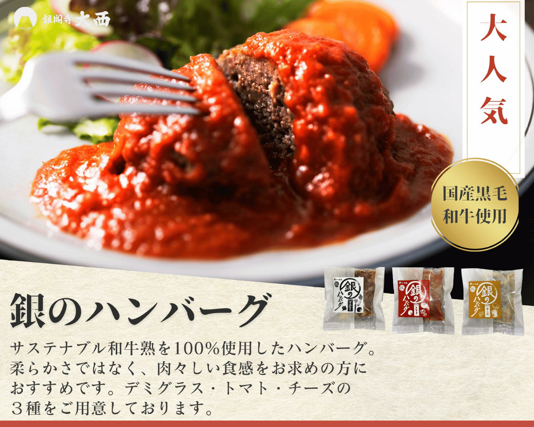 銀のハンバーグ 煮込みハンバーグ デミグラスソース 150g×2個 銀のハンバーグ 和牛100% 国産 和牛100% ハンバーグ デミグラス ソース 銀閣寺大西 真空パック 温めるだけ 惣菜 冷凍ストック 冷凍おかず サステナブル和牛 熟 50306