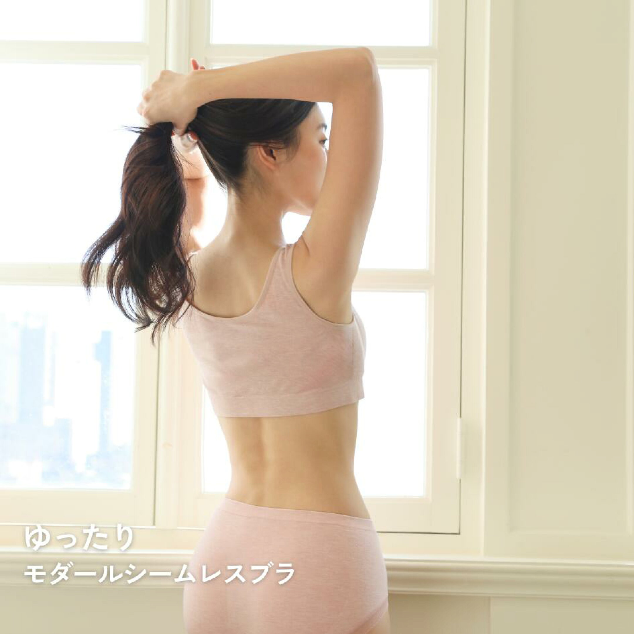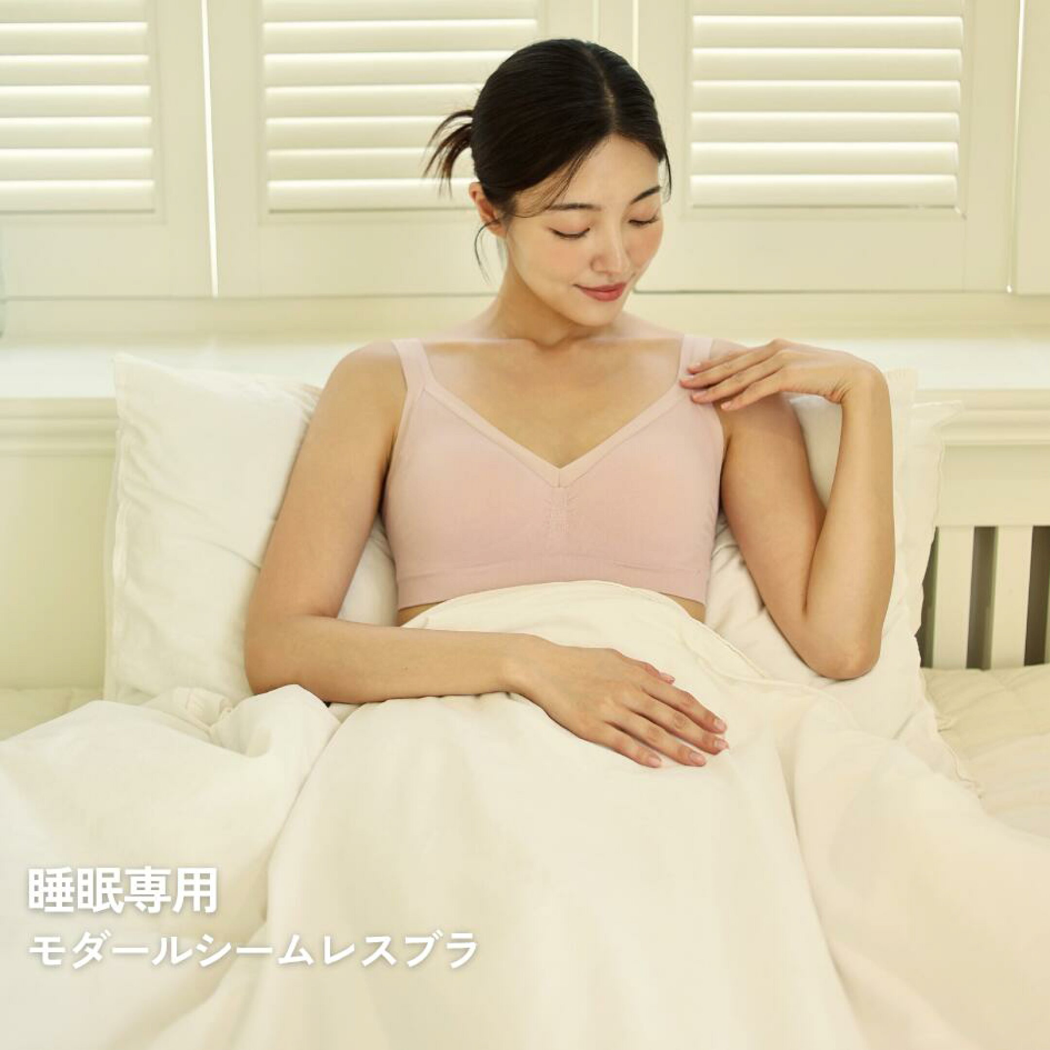 モダールの柔らかい肌触り。 たっぷりの生地が優しく包み込みます。 天然素材で肌に優しいから、敏感肌・乾燥肌でも安心。 眠るときこそ、心地いいブラをお選びください。
