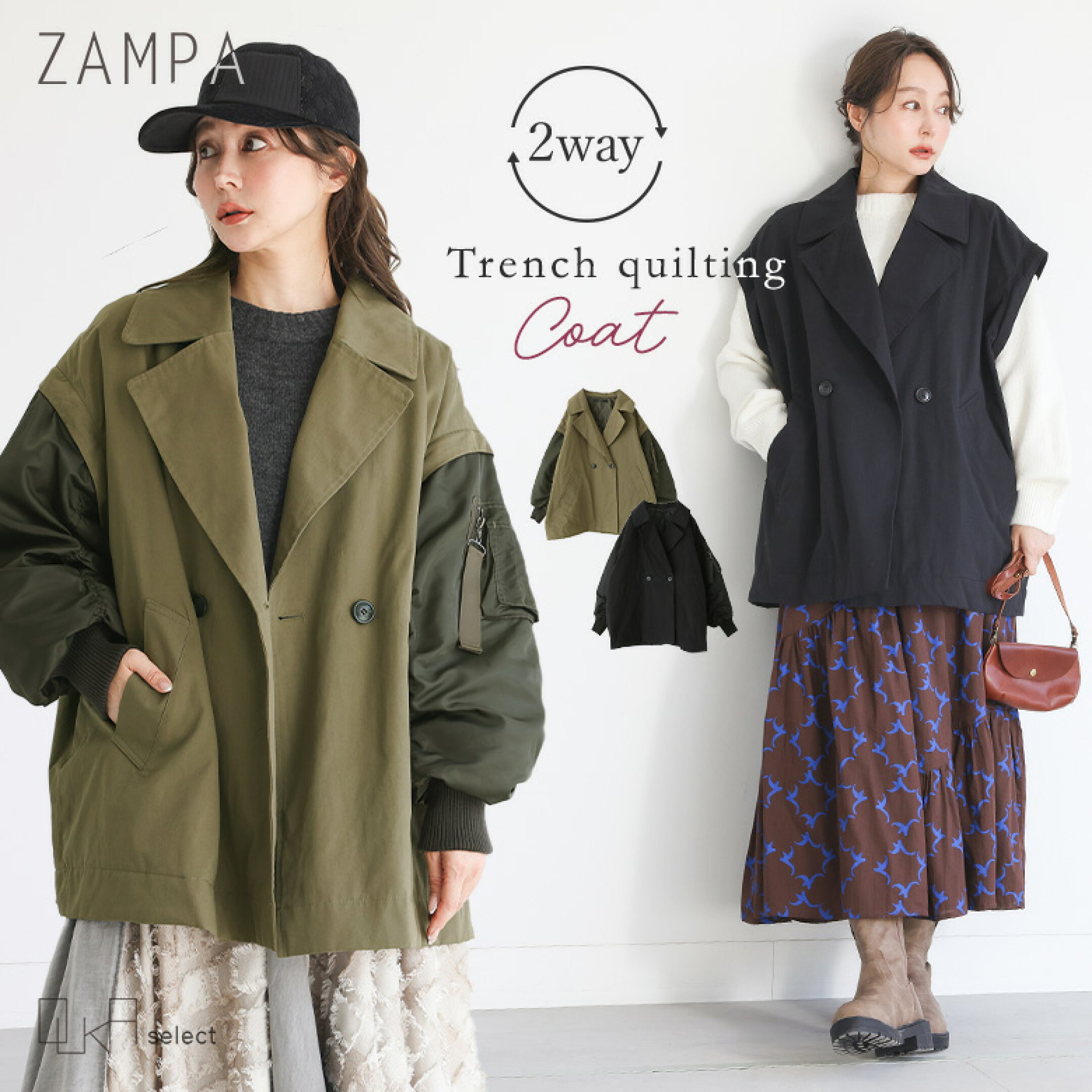【感謝価格】 コート ブルゾン ジレ レディース 春 秋 冬 ショート丈 ミドル丈 トレンチコート ライトアウター 体型カバー 2way 着回し ボリューム袖 キルティング ZAMPA ザンパ OUKA オウカ【メール便不可】【50】