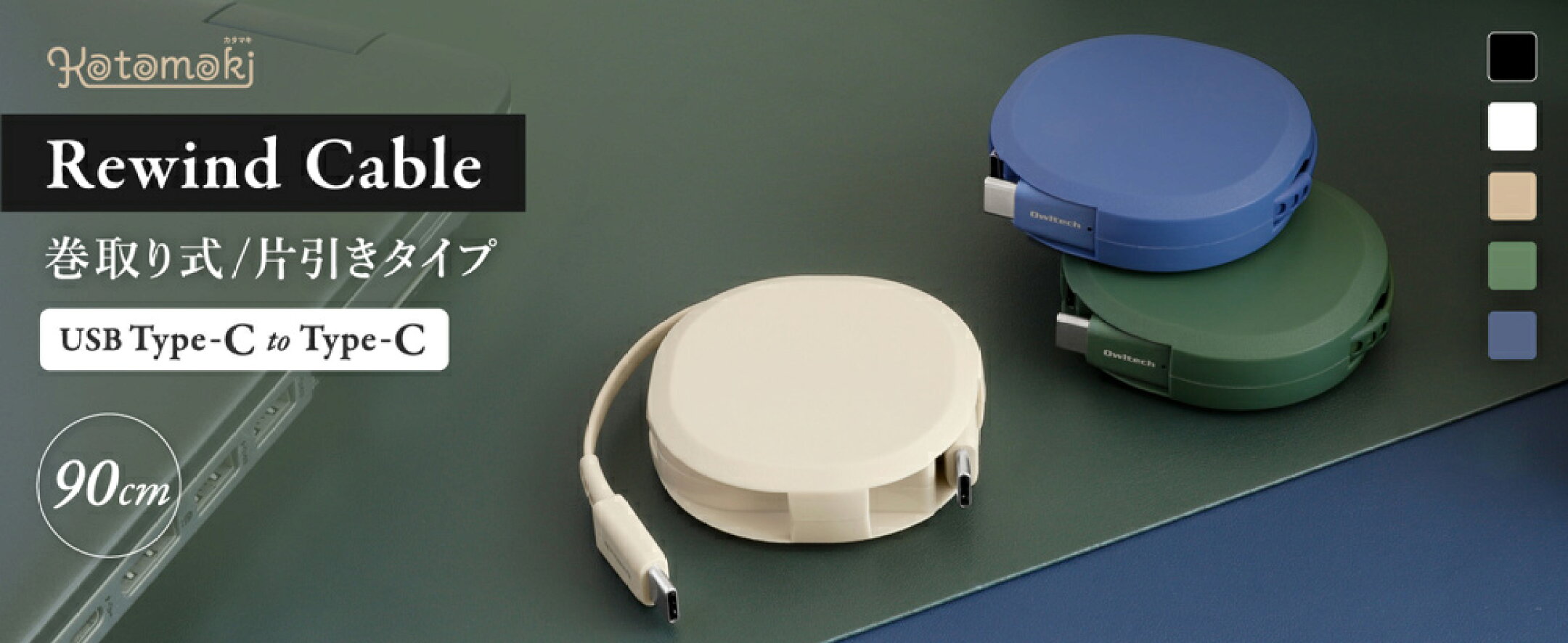 【スーパーSALE価格 12/11 1:59まで】 【当店人気No.1商品】 片引き 巻取り式 Type-C to C 充電ケーブル Katamaki PD60W 90cm 充電 データ通信対応 アースカラー サンドベージュ アッシュブルー オリーブグリーン ブラック ホワイト 1年保証 送料無料 【Web限定モデル】
