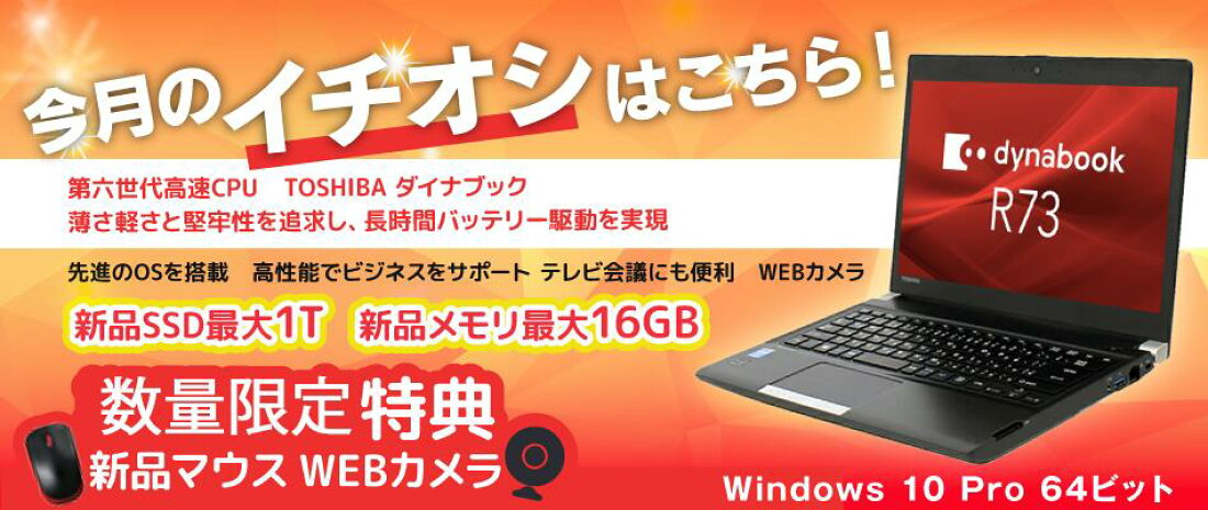 12月5日限定最大10000P!!|ノートパソコン WEBカメラ内蔵 dynabook R73 第六世代Core i5 中古パソコン メモリ16GB 新品SSD1TBまで増設可 13インチ軽量 大容量 高性能WIFI Bluetooth内蔵 Windows11 オフィス付き MicrosoftOffice2024可 長期保証 送料無料 TOSHIBA