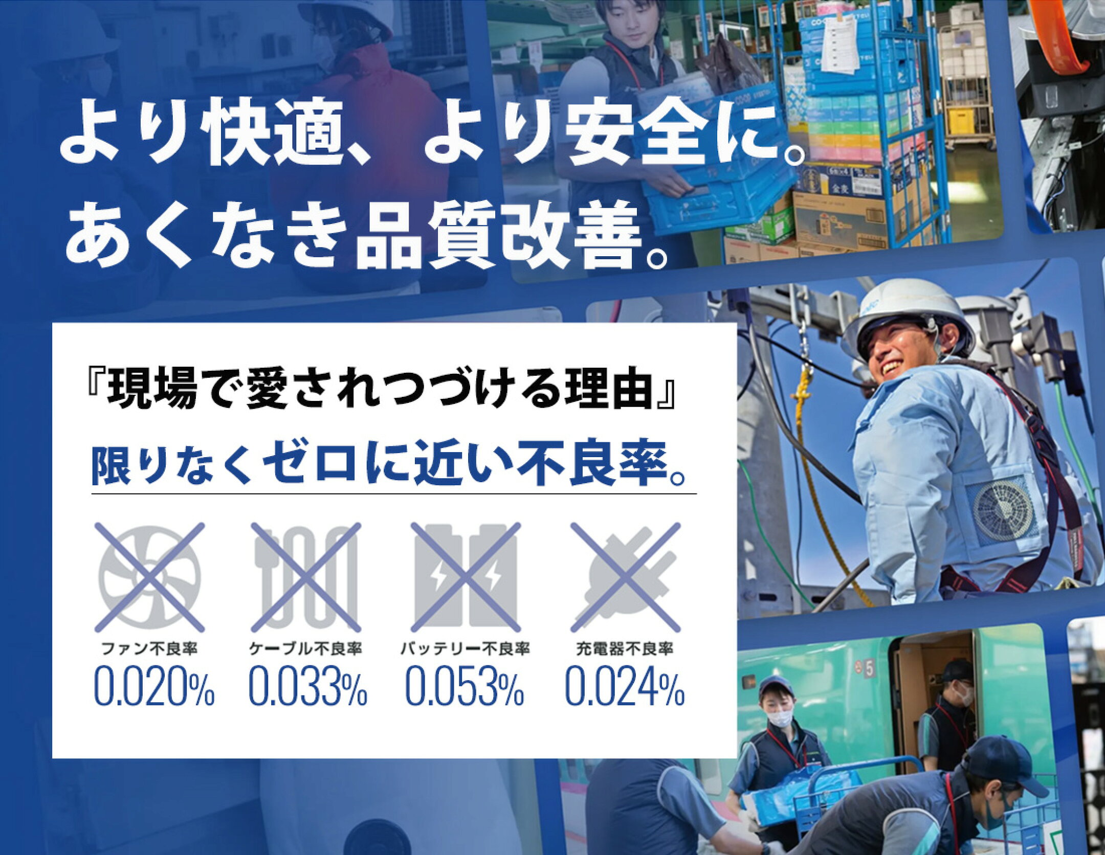 空調服(R)をご利用の際は、空調服(R)専用のウェア・ファン・バッテリー等をご使用ください。 他社製品との組み合わせによる使用は故障や事故の原因となります。