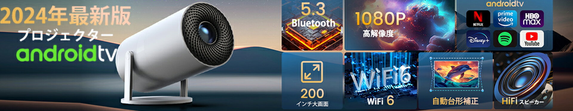 【楽天スーパーSALE 半額!】【Android TV搭載・高画質】プロジェクター 小型 自動フォーカス 4K対応 Netflix 家庭用 1080P 高画質 自動台形補 高性能 5G wi-fi 6 対応 ホームシアター 子供 壁 コンパクト 4Kビデオに適応する ホームシアター PSE認証済