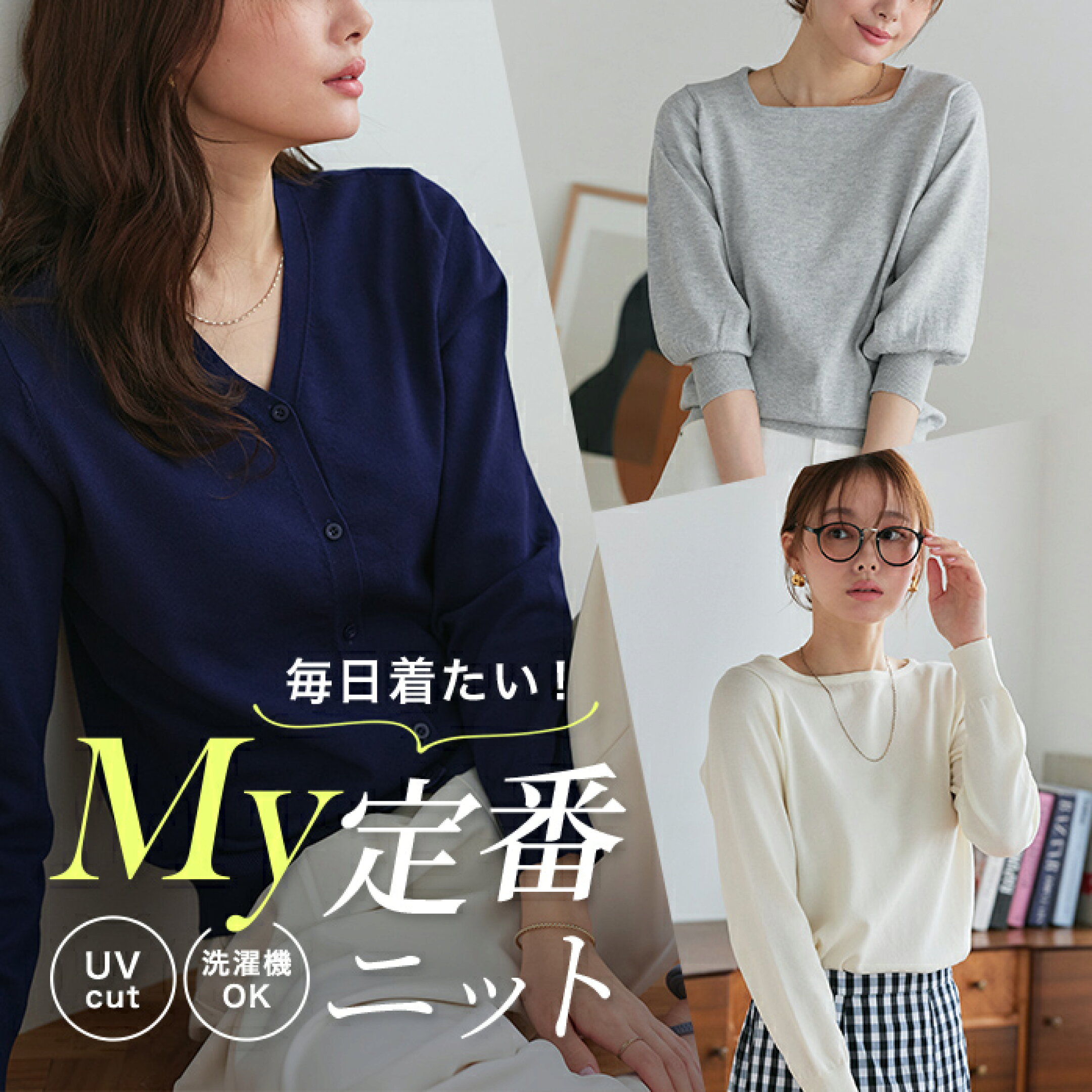 【予約】【UV/ウォッシャブル】ネックが選べるニット ☆ 伸縮性 Vネック ボートネック 上品 体型 カバー 抜け感 デコルテ ピエロ【Pierrot】 送料無料 【2月中旬頃より順次発送】