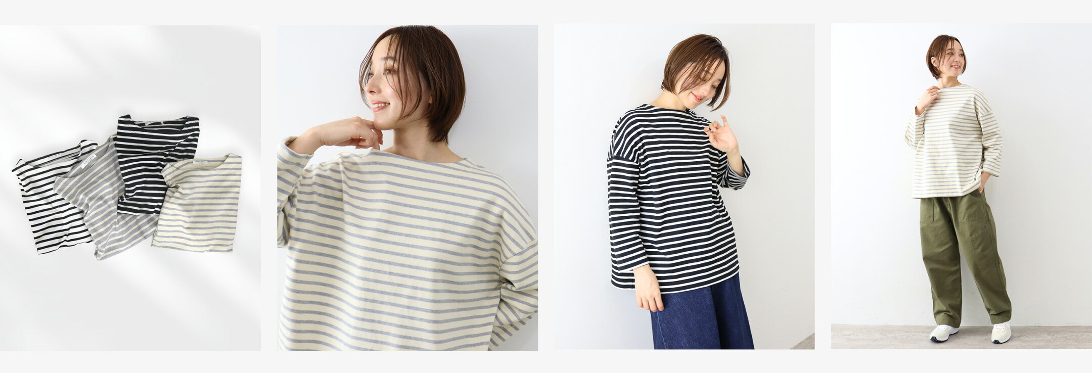 長袖 tシャツ ロンt レディース オーガニックコットン ボーダー 綿100 綿 秋 カットソー きれいめ 長袖tシャツ インナーharmonie OrganicCotton アルモニボーダーT ロングスリーブ ボーダーtシャツ 綿100% 日本製 8830011