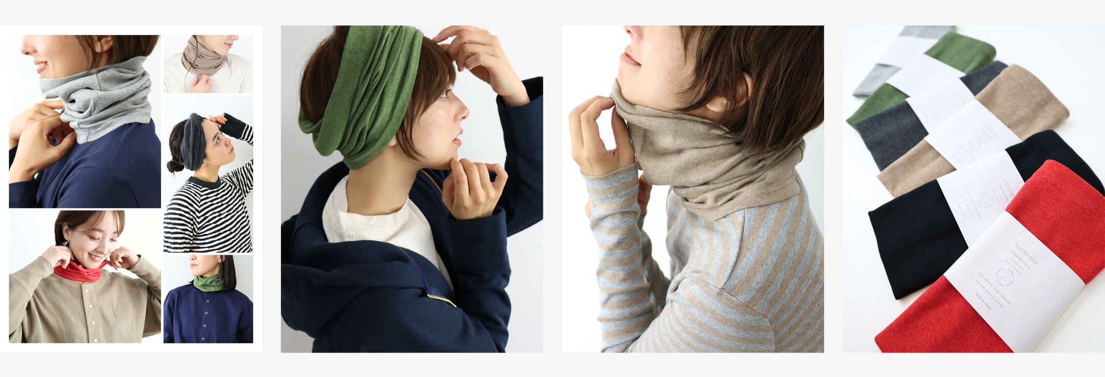 【予約カラ?あり】ネックウォーマー 3way オーガニックコットン 首だけ タートルネック ヘアバンド 帽子 タートル 付け襟 つけ襟 薄手 おしゃれ スヌードharmonie Organic Cotton アルモニオーガニック コットン 綿100% 日本製 82000565