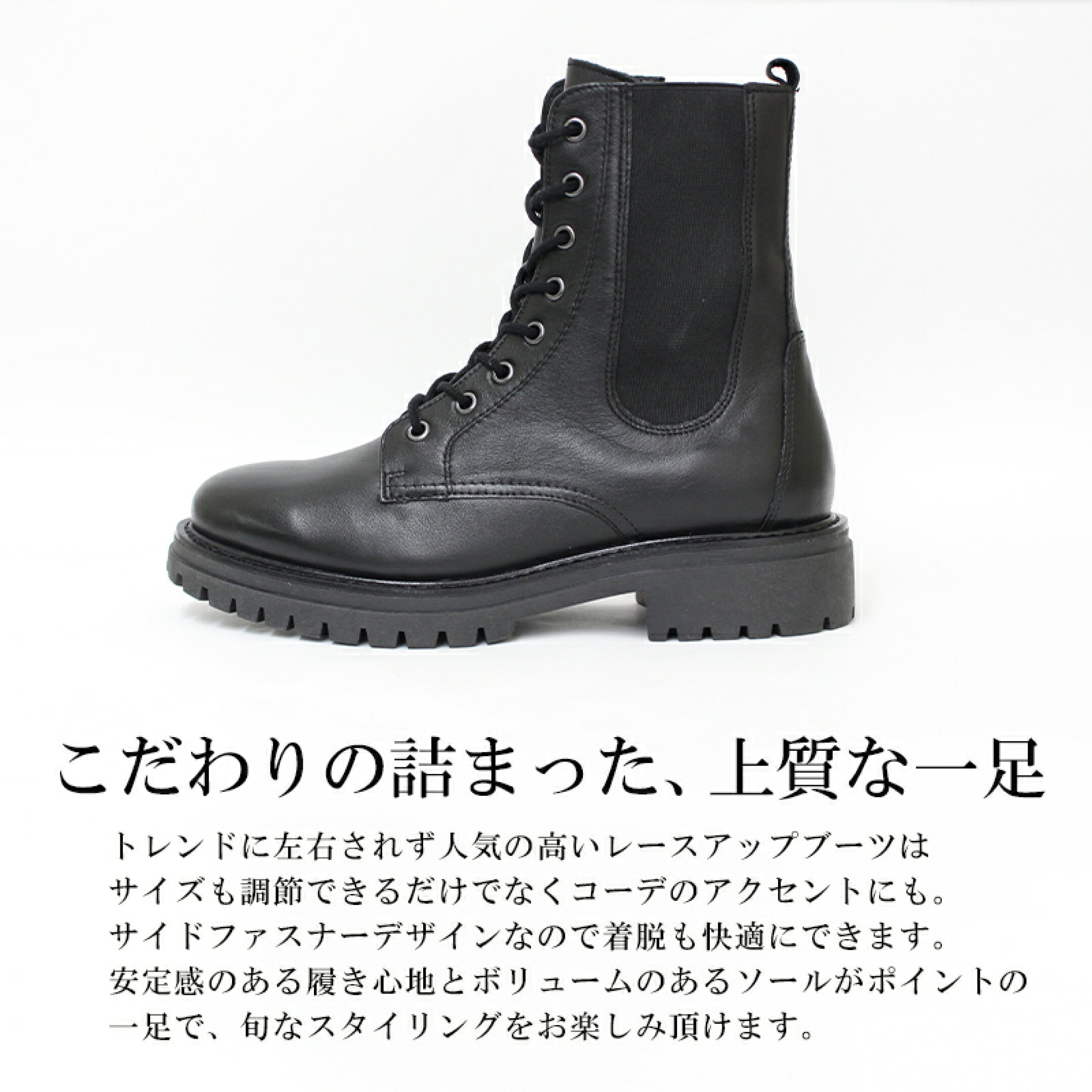ブーツ レディース 本革 ショート 靴 ショートブーツ シューズ 秋冬ブーツ レースアップ サイドジップ 編み上げブーツ 太ヒール レザー 厚底 防寒 撥水 黒 ブラック ダークブラウン 歩きやすい かっこいい 履きやすい 柔らかい 送料無料 ※沖縄除く