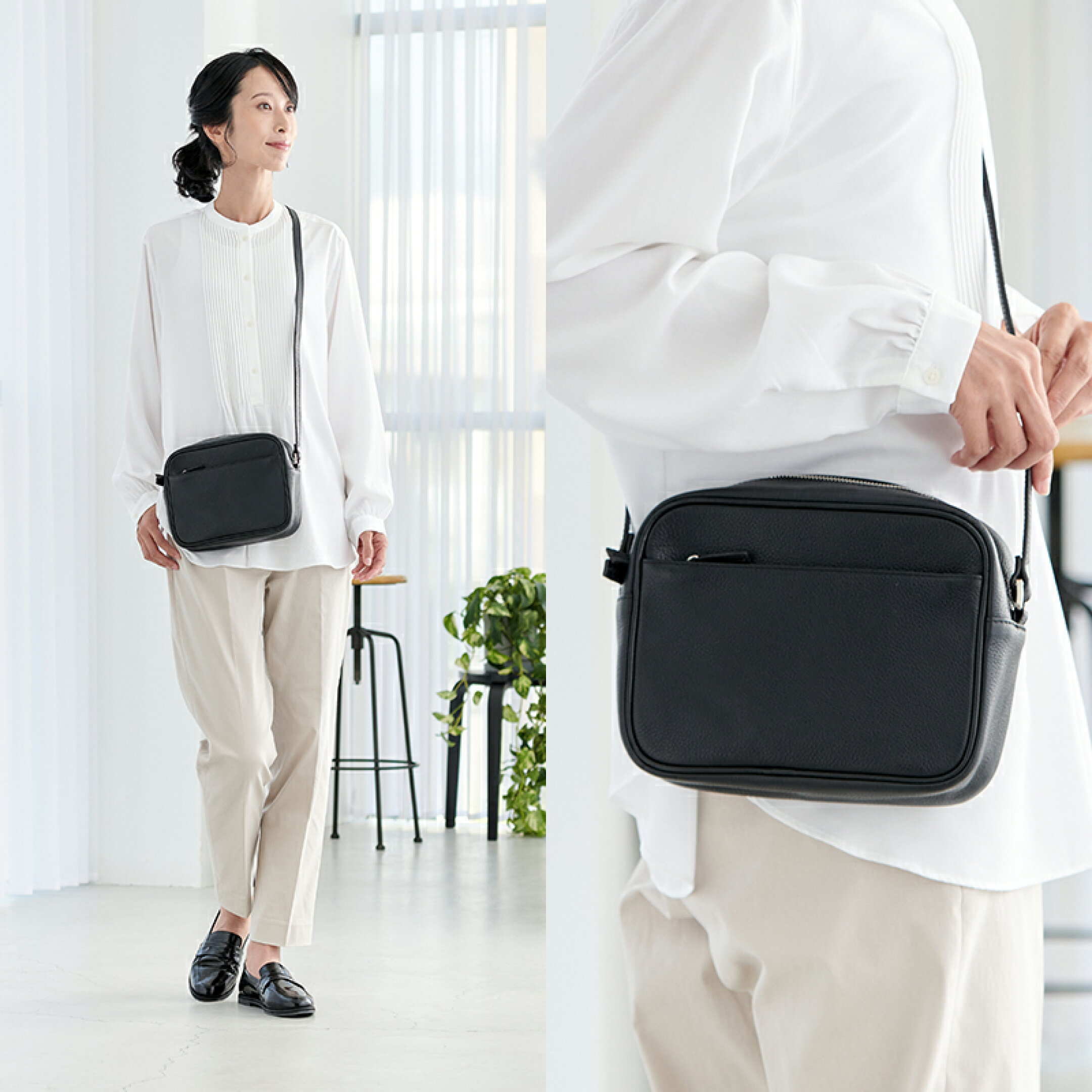 本革 ショルダーバッグ 斜めがけ スクエア型 旅行 軽量 レディース ユニセックス シュリンクレザー 20 30 40 50 代 レザー ブラック グレー グレーベージュ 天然皮革 お出かけ オフィス カジュアル 小さめ 送料無料 ※沖縄除く