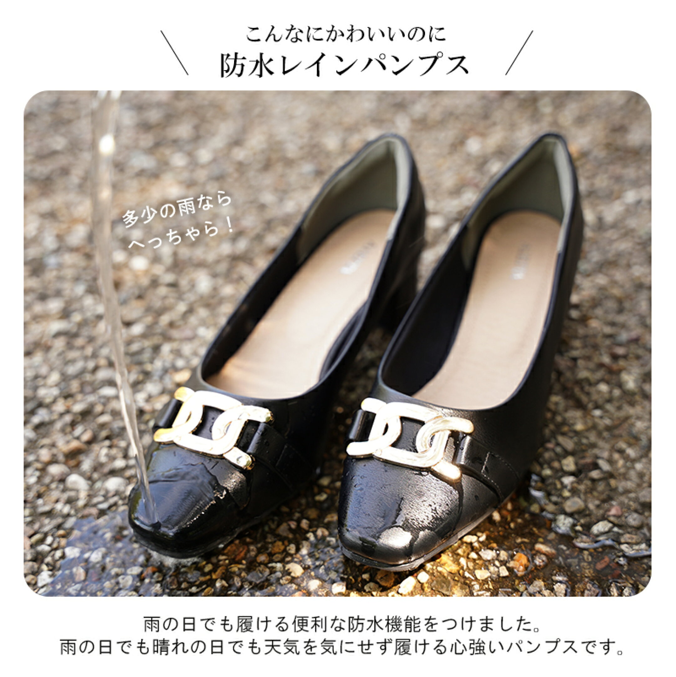 【ALETTA】スクエアトゥ/4.5cmヒール/晴雨兼用