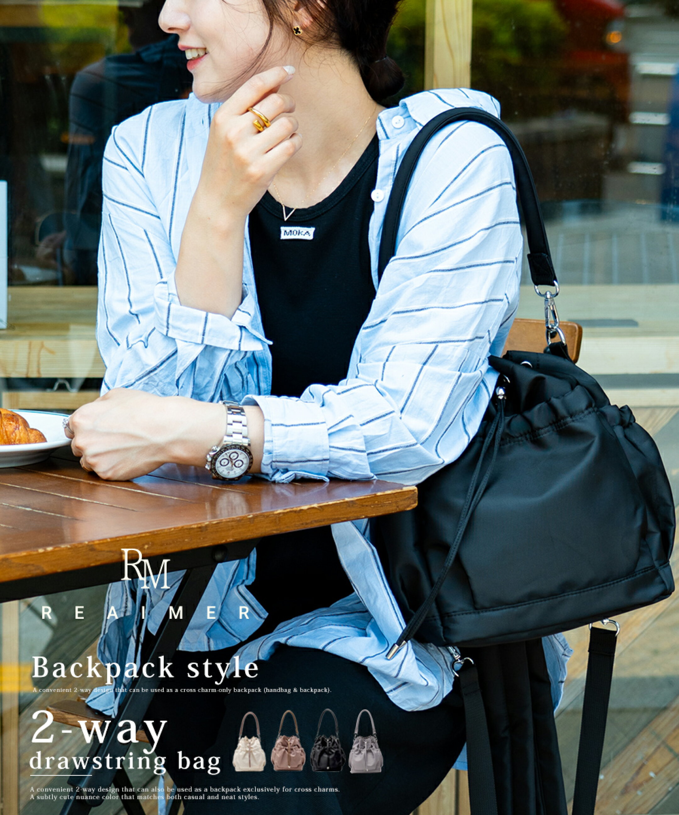 /可愛いだけじゃない。頼れる2WAYバッグ/ クロスチャームだけのリュックにもなる便利な2way仕様(ハンドバッグ&リュック)トレンド感のある巾着シルエットに仕上げました。上品見えするマットカラーとシンプルなデザインでどんな服装にも合わせやすくカジュアルにもきれいめにもマッチします。