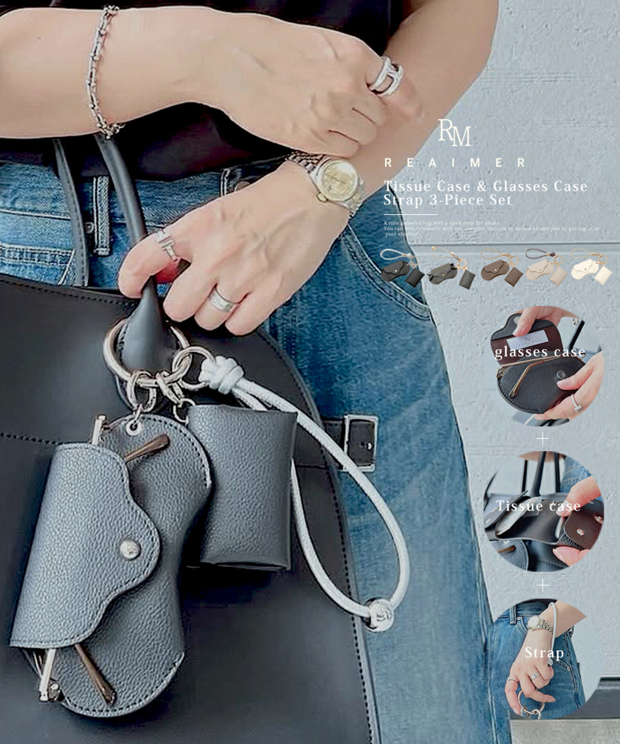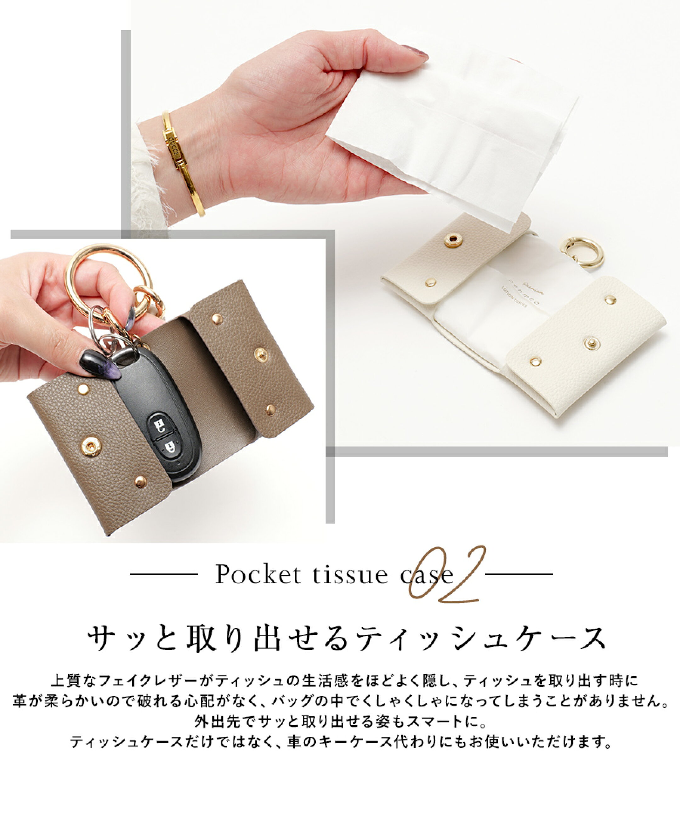 /上質を持ち歩くスマートな3点セット/ 毎日使う必需品をおしゃれにまとめて携帯でき、 バッグの中で迷子になりがちなメガネ&ティッシュをスマートに収納。メガネ&ポケットティッシュを持ち歩くのが、ちょっと楽しくなる。 見せても可愛いが叶う、優秀アイテムです。