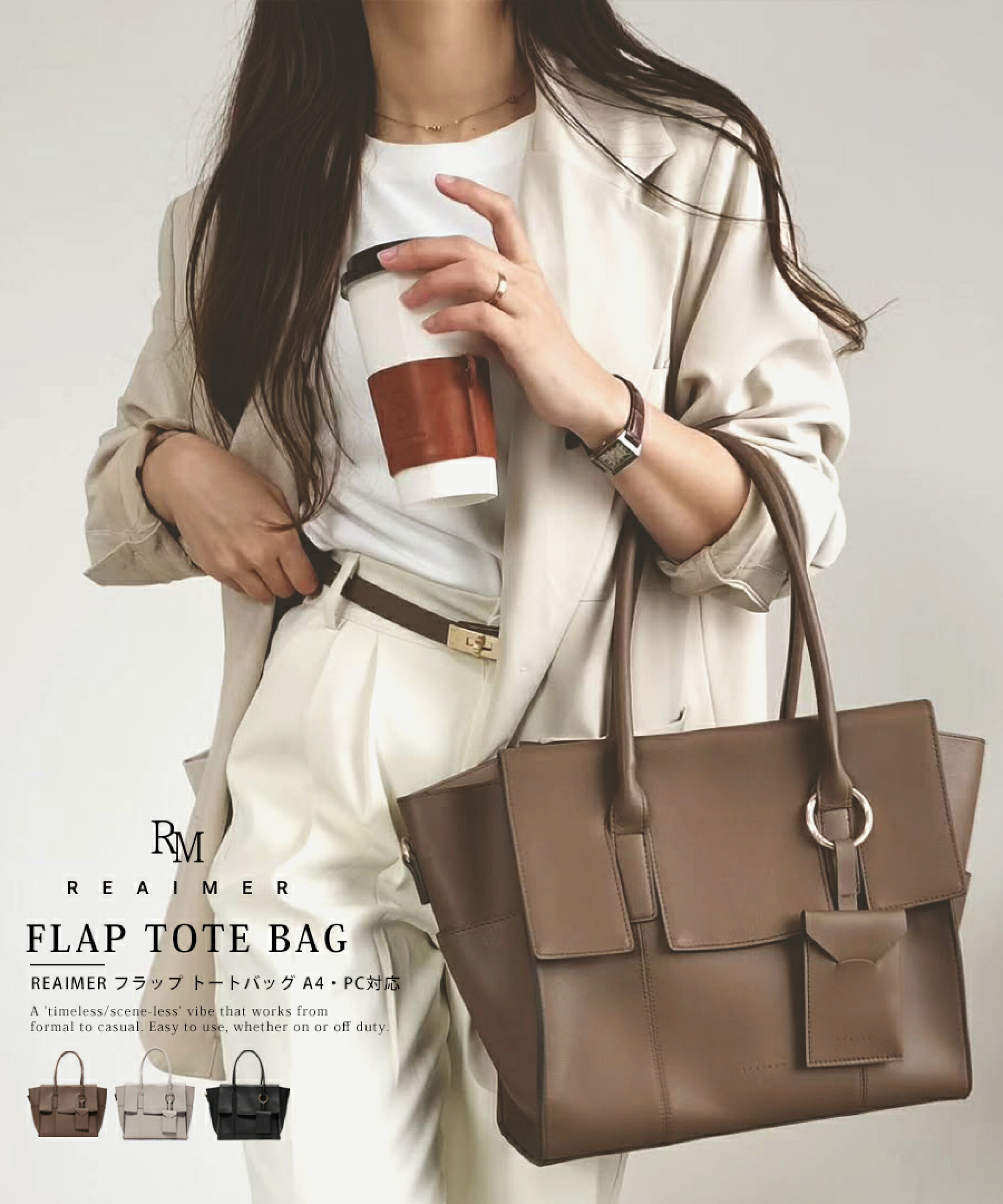 Pre-Order Starts Now-先行予約SALE開催中- 上品さと実用性を兼ね備えた、『大人の日常に、ちょうどいい存在感』オリジナルレディースバッグブランド「REAIMER(リエメ)」のトートバッグ。 『働く私の、定番バッグ』そんな想いを、このバッグに込めました。
