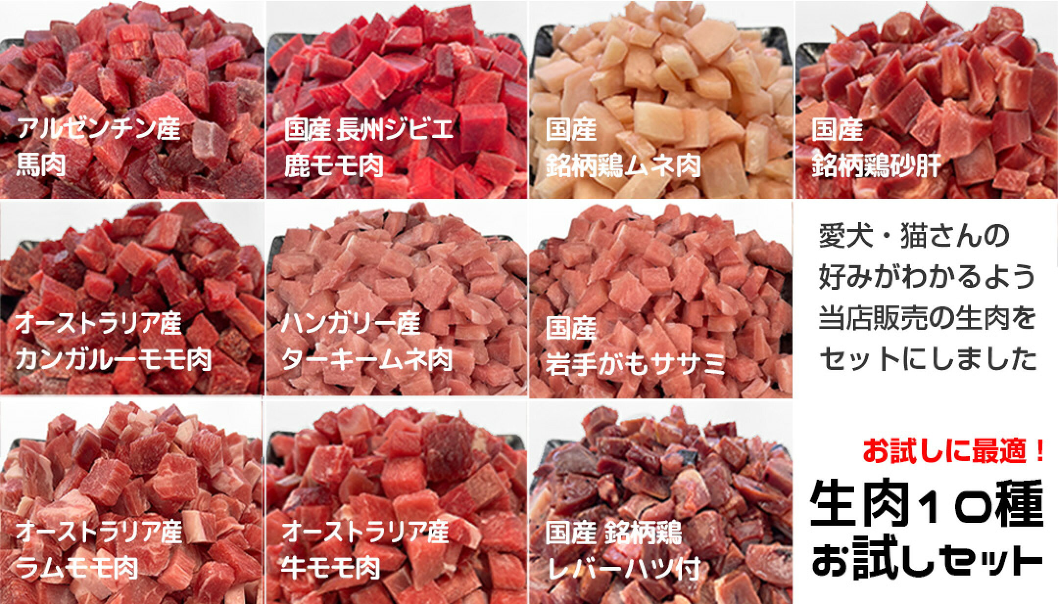 犬用・猫用 生肉10種お試しセット 小型犬向けパック 420g 各種生肉10種類 冷凍真空パック【クール便発送】犬 猫 手作りごはん