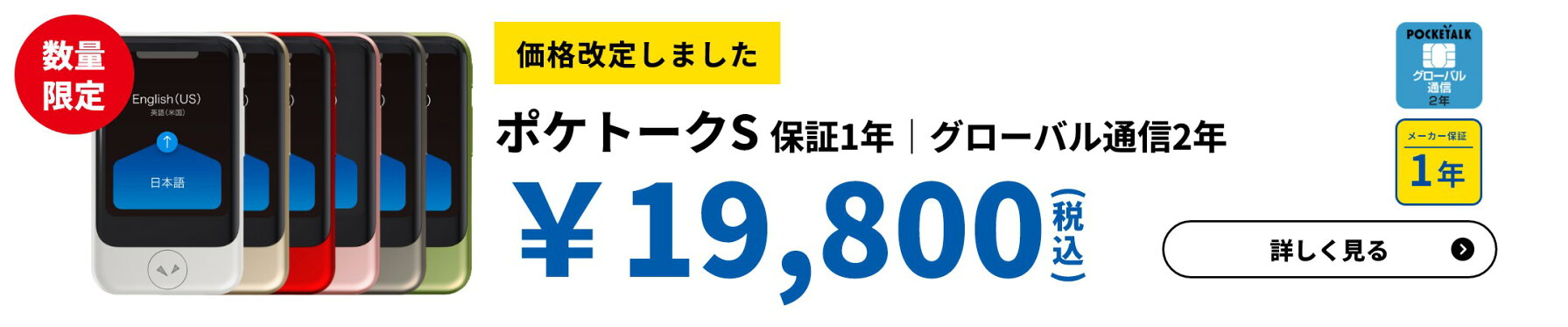 ランキング1位獲得【価格改定】 POCKETALK(ポケトーク) S グローバル通信2年付 70言語以上対応 翻訳機 通訳機 語学学習 英語 中国語 海外旅行 英会話 送料無料 ベトナム語 イタリア 韓国 スペイン ポケット 音声