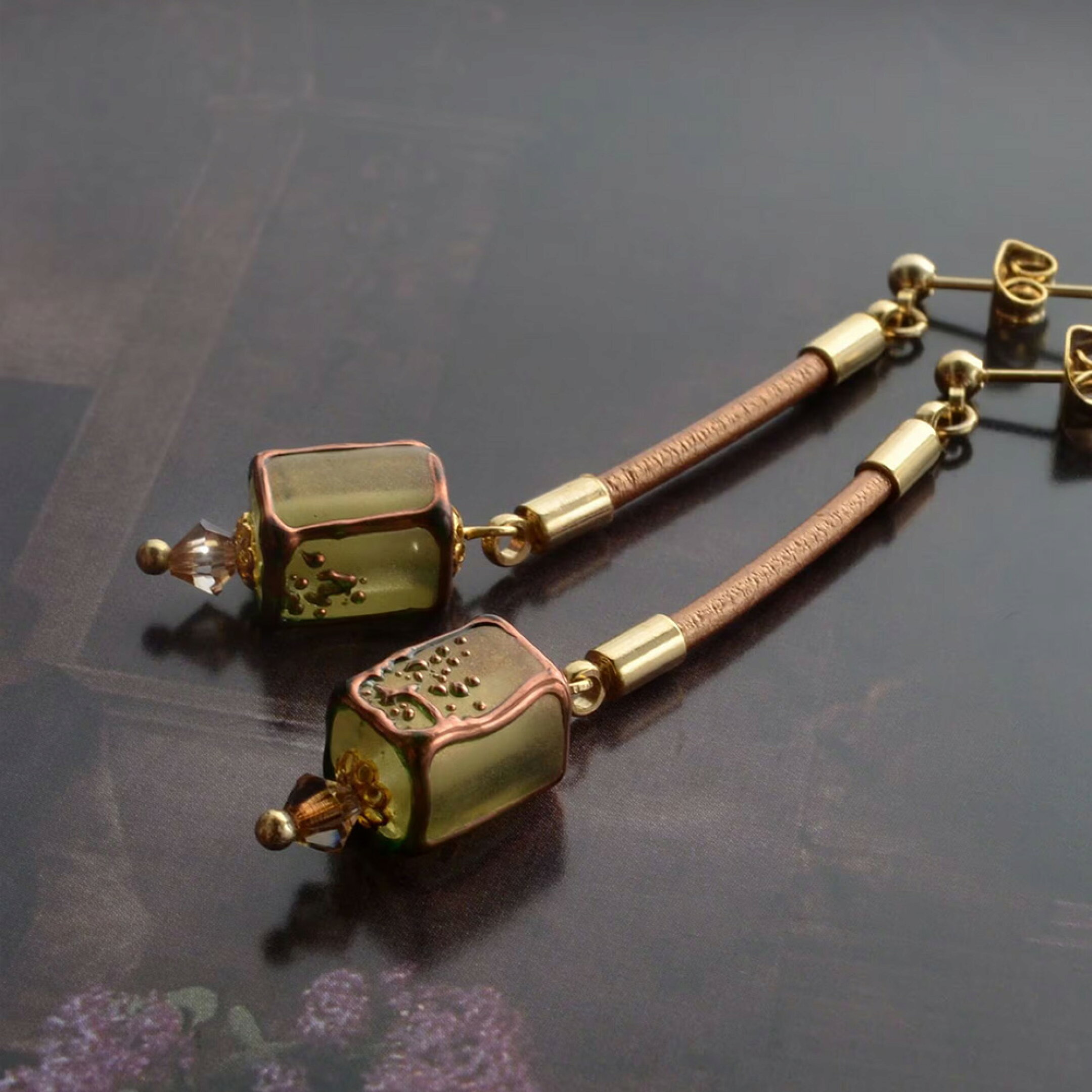 チェコ ピラービーズ レザー ピアス ノンホールピアス