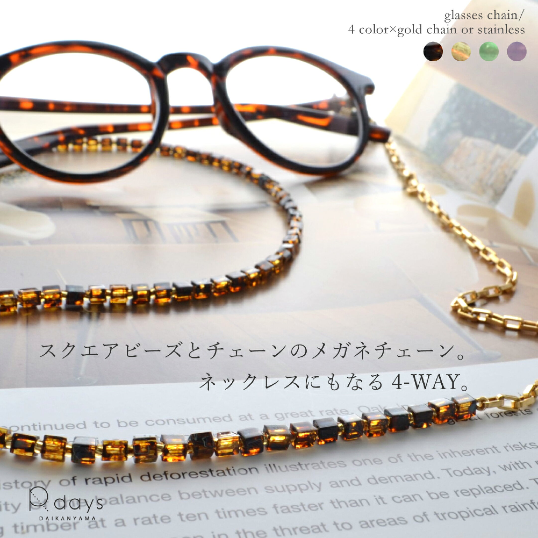 メガネチェーン キュービックガラスビーズ&メガネチェーン マスクチェーン ハットチェーン ネックレス R-days ステンレス ゴールドカラー おしゃれ 金属アレルギー グラスコード レディース ※「ゆうパケット」送料無料