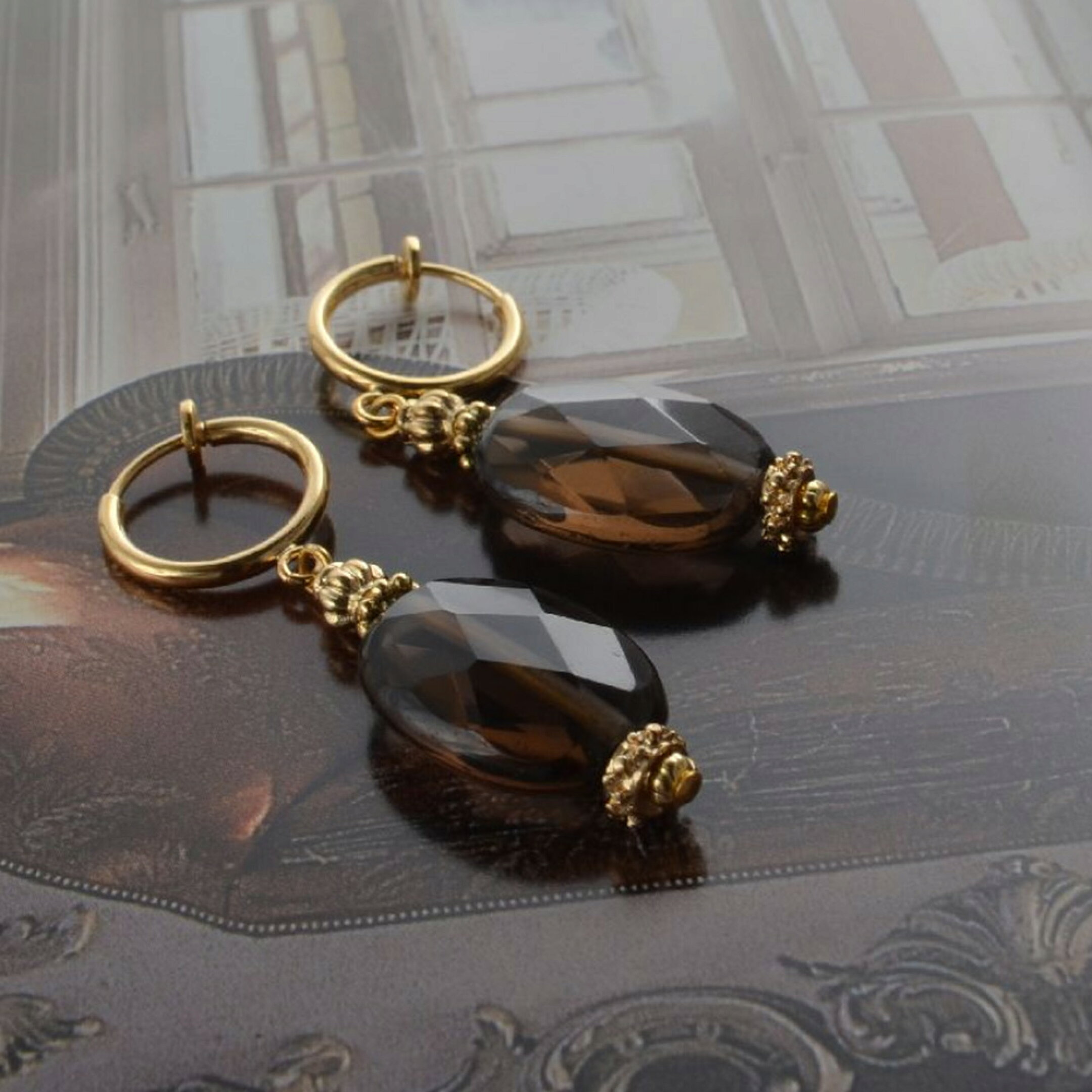天然石 スモーキークオーツ ピアス / イヤリング / ノンホールピアス クオーツ 茶水晶 カット キャッチレスピアス フープピアス アレルギーフリー 華やか 品格 パーティ ランチ会 アクセサリー レディース ※「ゆうパケット」送料無料