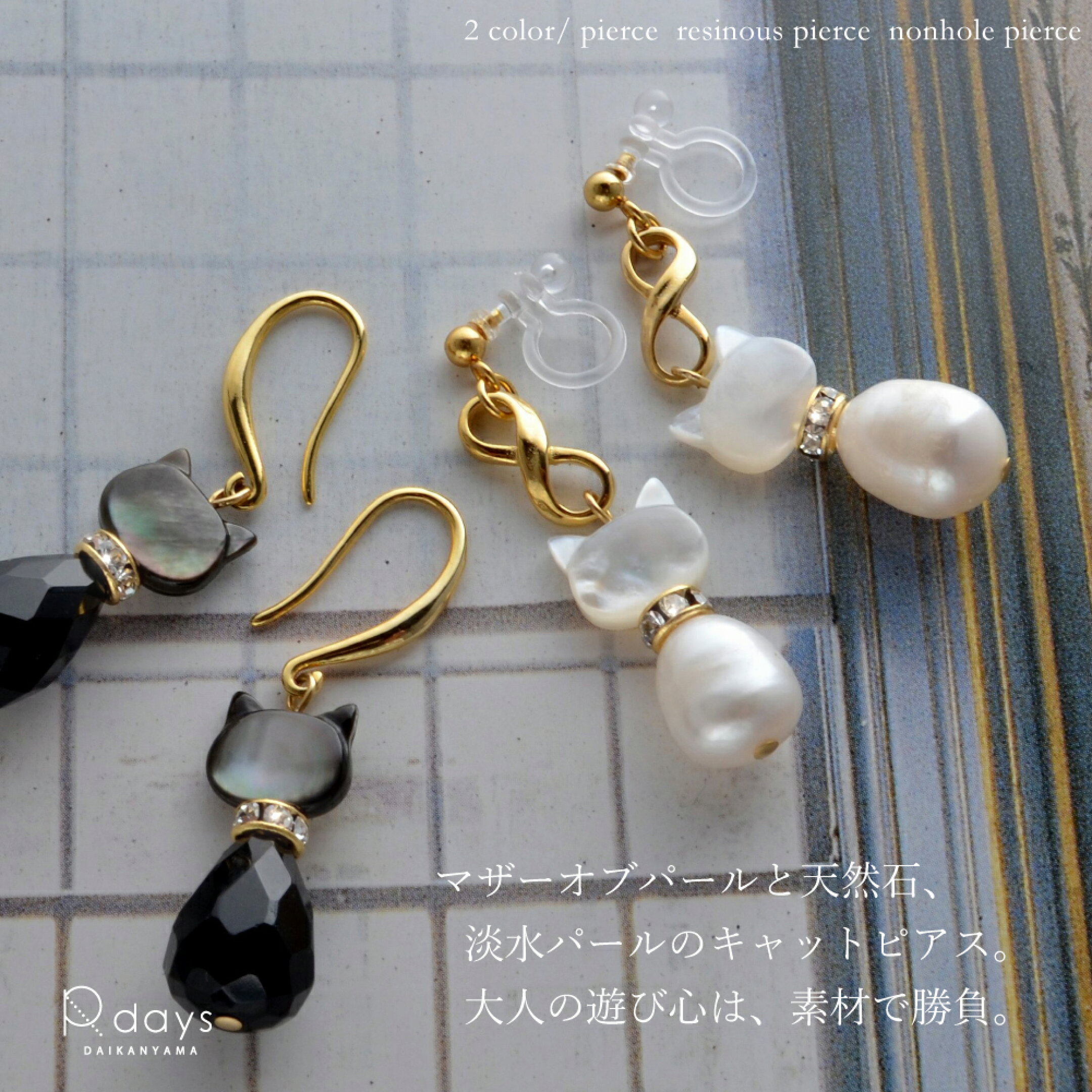 マザーオブパール キャットモチーフ ピアス ノンホールピアス