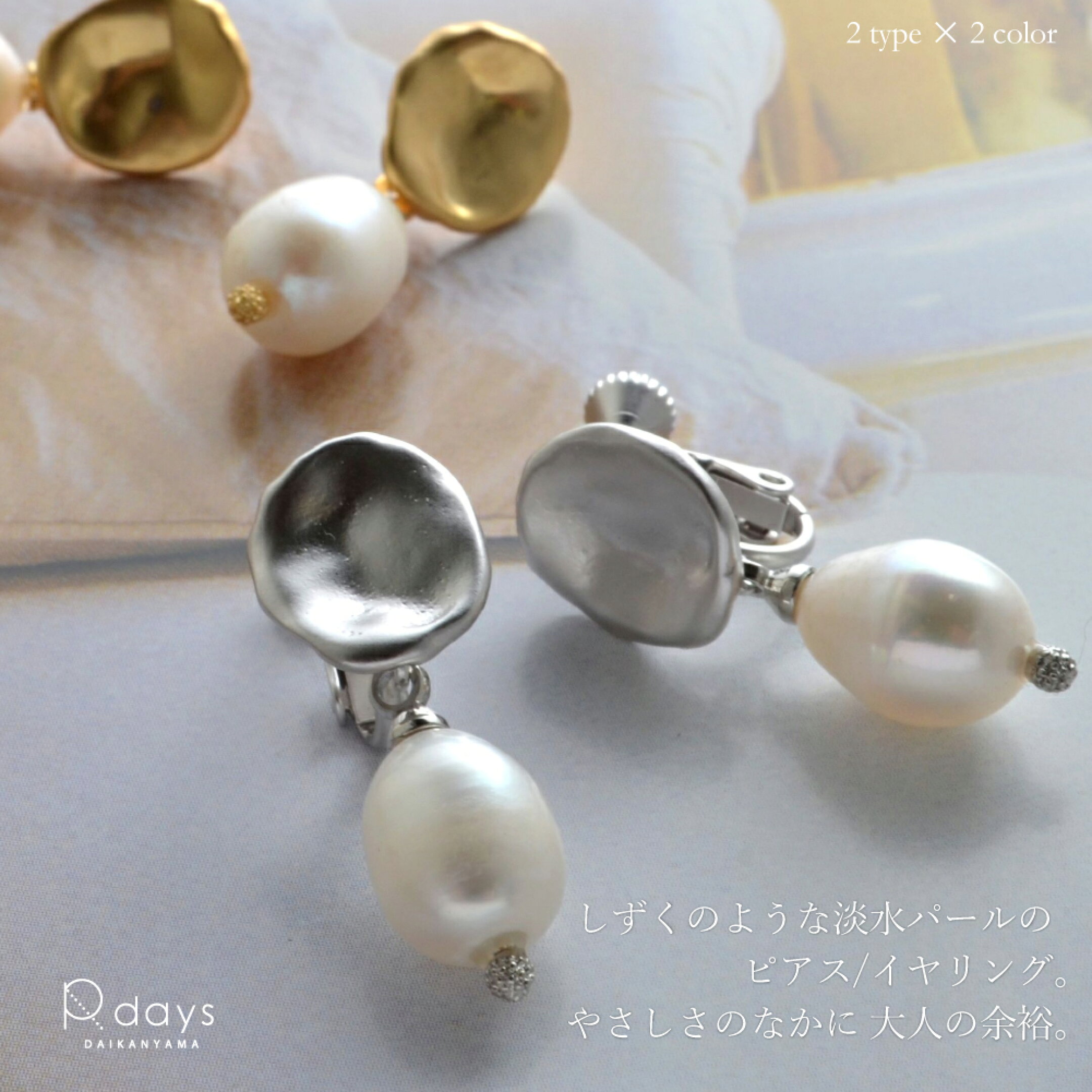 淡水パール ライス ピアス イヤリング R-days 天然 パール ノンホールピアス 卒業式 入学式 母 ママ 服装 アレルギーフリー 金属アレルギー 結婚式 学校行事 オケージョン シンプル アクセサリー レディース ギフト ※「ゆうパケット」送料無料