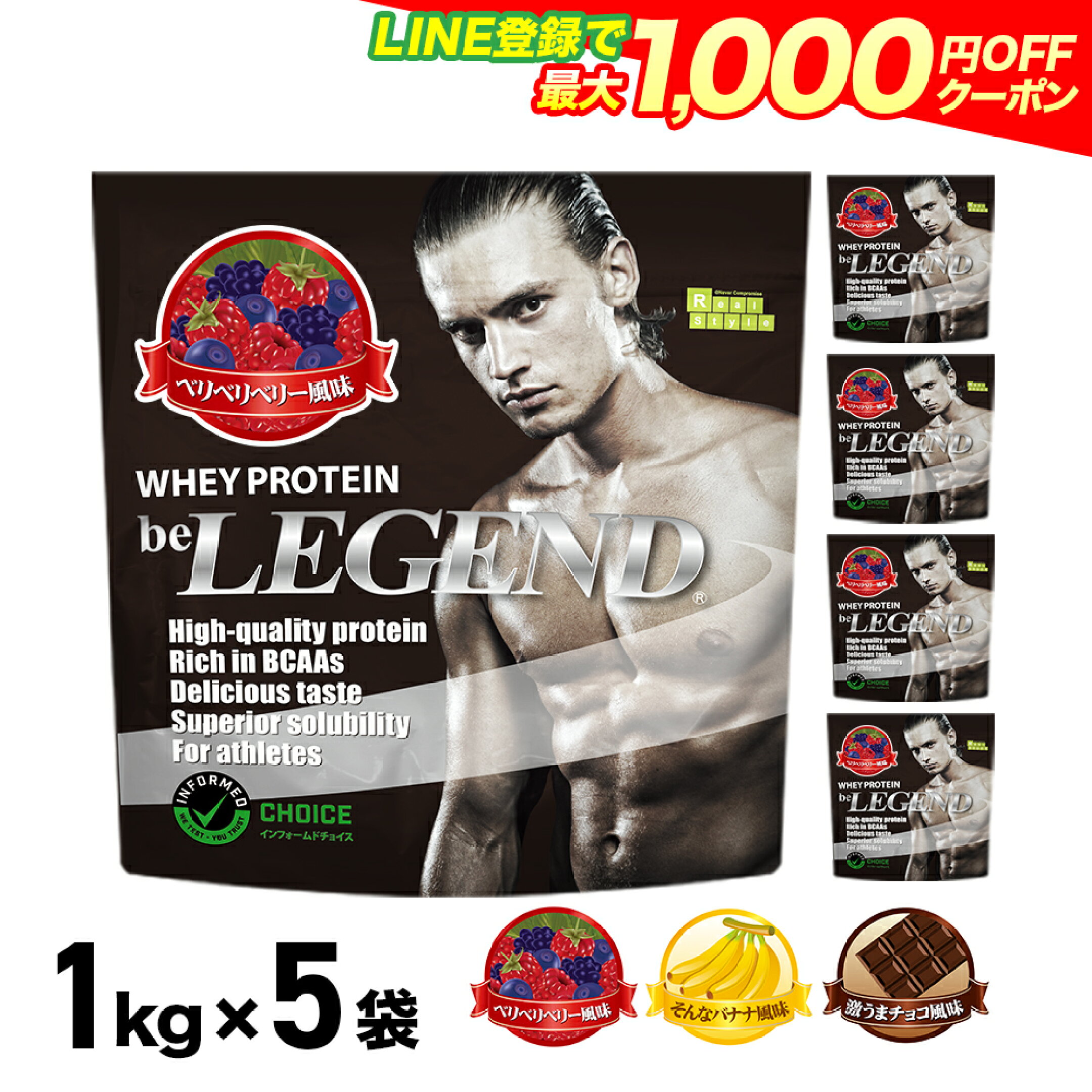 【LINE登録で最大1000円OFF】ビーレジェンド プロテイン 1kg×5袋セット 5kg ベリベリベリー そんなバナナ 激うまチョコ から選べる(be LEGEND ホエイプロテイン)【オススメ】【大容量】ホエイプロテイントレーニング 筋トレ WPC 男性 女性 飲みやすい
