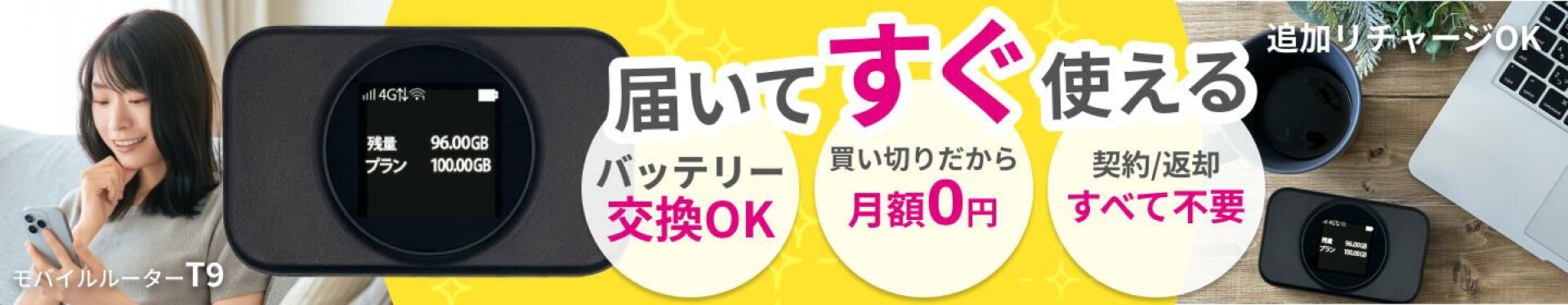 期間限定セール!【リチャージWiFi 公式 新商品】ポケットWiFi 買切り T9 ロングバッテリー ギガ付き 契約不要 月額費用なし レンタル 不要 30日 365日 モバイルルーター モバイルWi-Fi 国内旅行 出張 チャージ