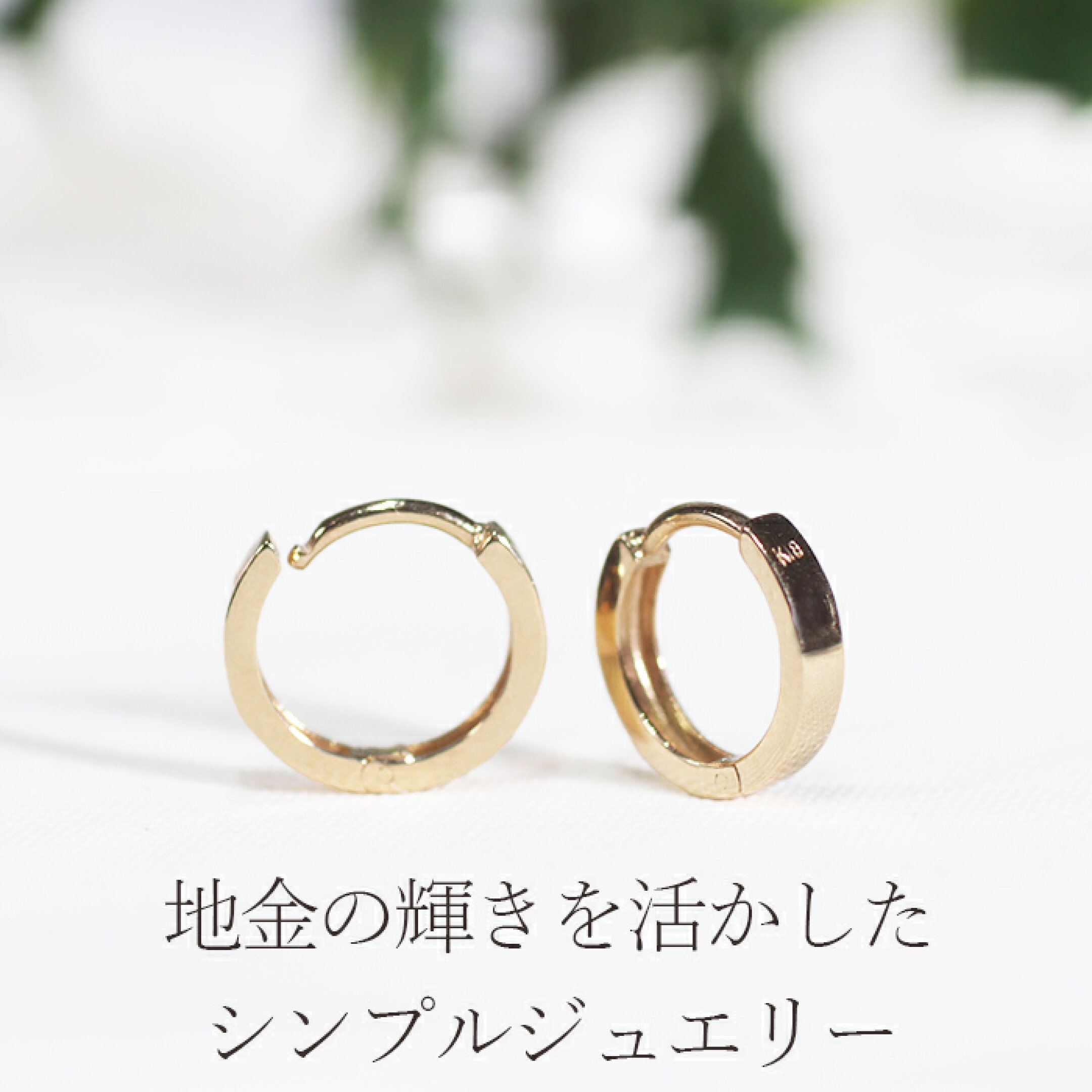 地金の輝きを活かしたシンプルなピアス。イエローゴールドは、顔まわりを明るく照らし、華やか、上品に! 中折れピアスは簡単ワンタッチで安心な着け心地。ポストが外に出ないので髪に引っ掛からないのも魅力。