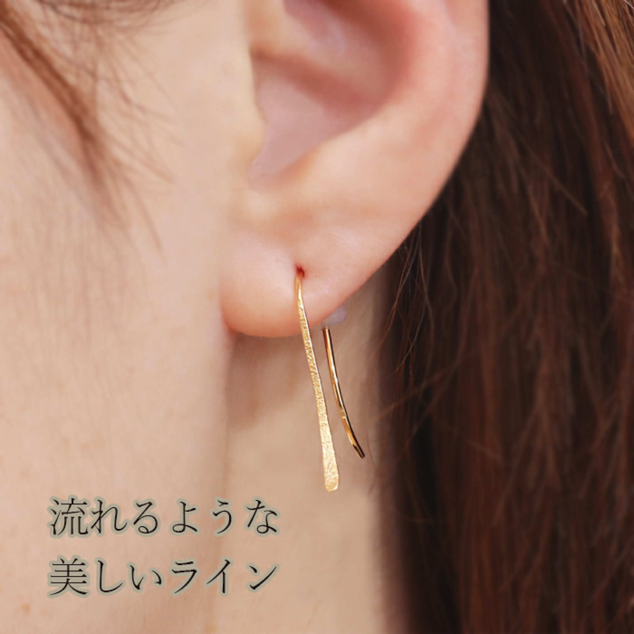 K18YG 地金 ピアス【送料無料】【品質保証書】18金 ゴールド ピアス レディース ジュエリー 綺麗 キラキラ イエローゴールド 可愛い 人気 おしゃれ 大きめ 地金 地金のみ 華やか 上品 フックピアス プレゼント 贈り物 シンプル アラシ加工 マット