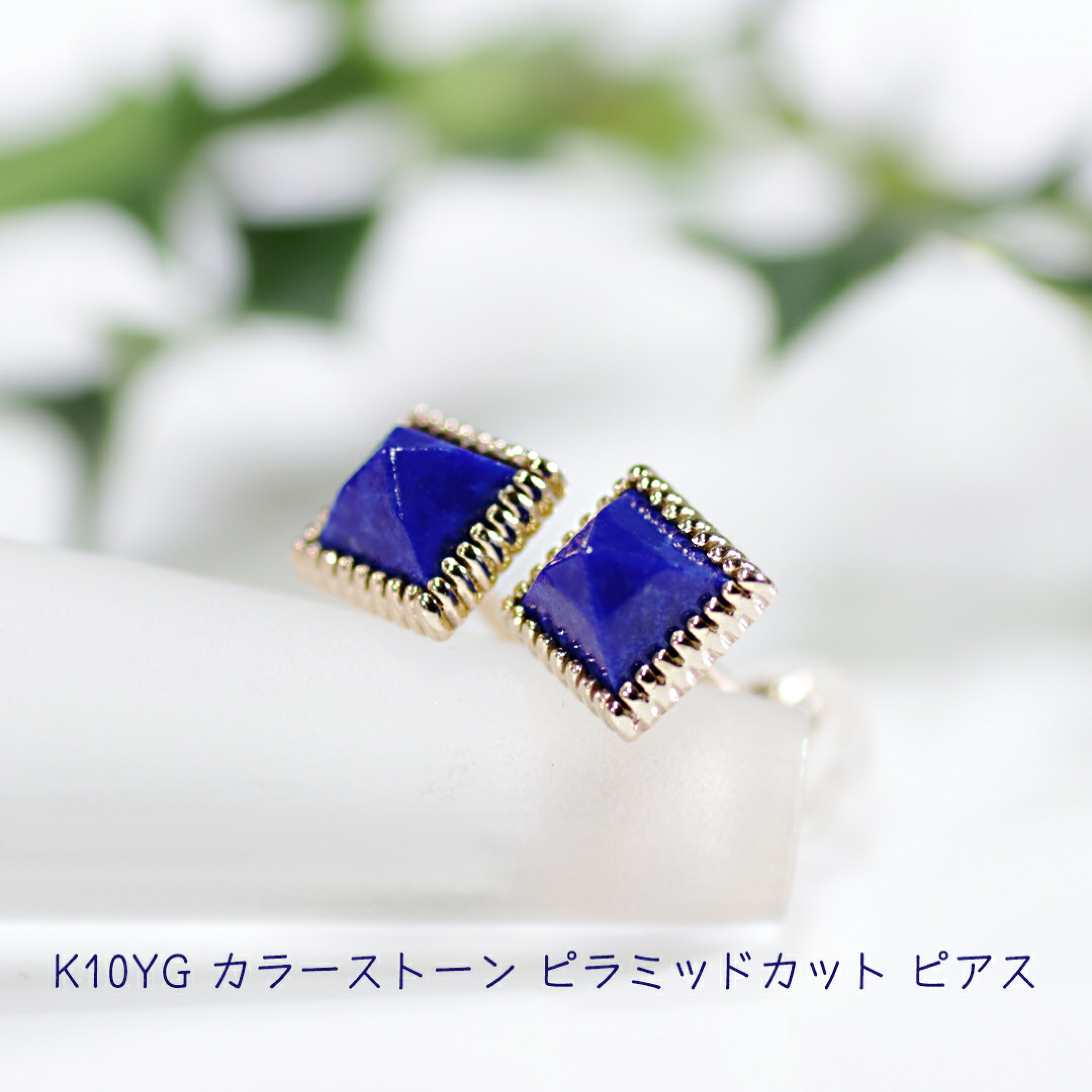 K10YG カラーストーン ピラミッドカット ピアス 動画あり【送料無料】【品質保証書】10金 ゴールド レディース ジュエリー 綺麗 色石ピアス パワーストーン カラージュエル 可愛い 人気 一粒 ピラミッド 三角 スクエア ピラミダルカット お守り デザイン