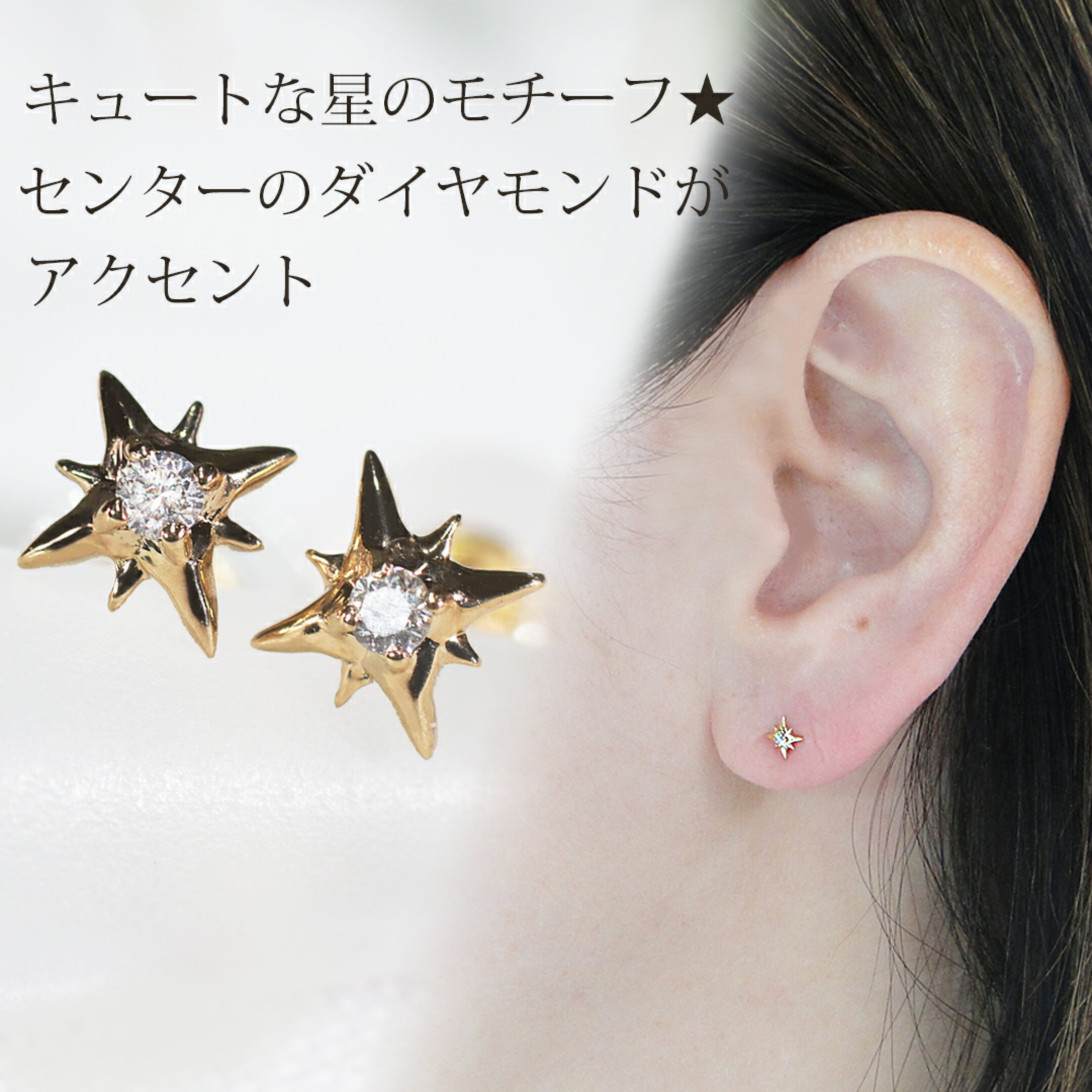 K18YG ダイヤモンド 星モチーフ ピアス【0.02ct】【送料無料】【品質保証書】18金 ゴールド ダイヤ ピアス レディース ジュエリー プレゼント 綺麗 星 スター イエローゴールド ダイヤモンドピアス 可愛い 人気 上品 普段使い 小さめ プチ 一粒ダイヤ