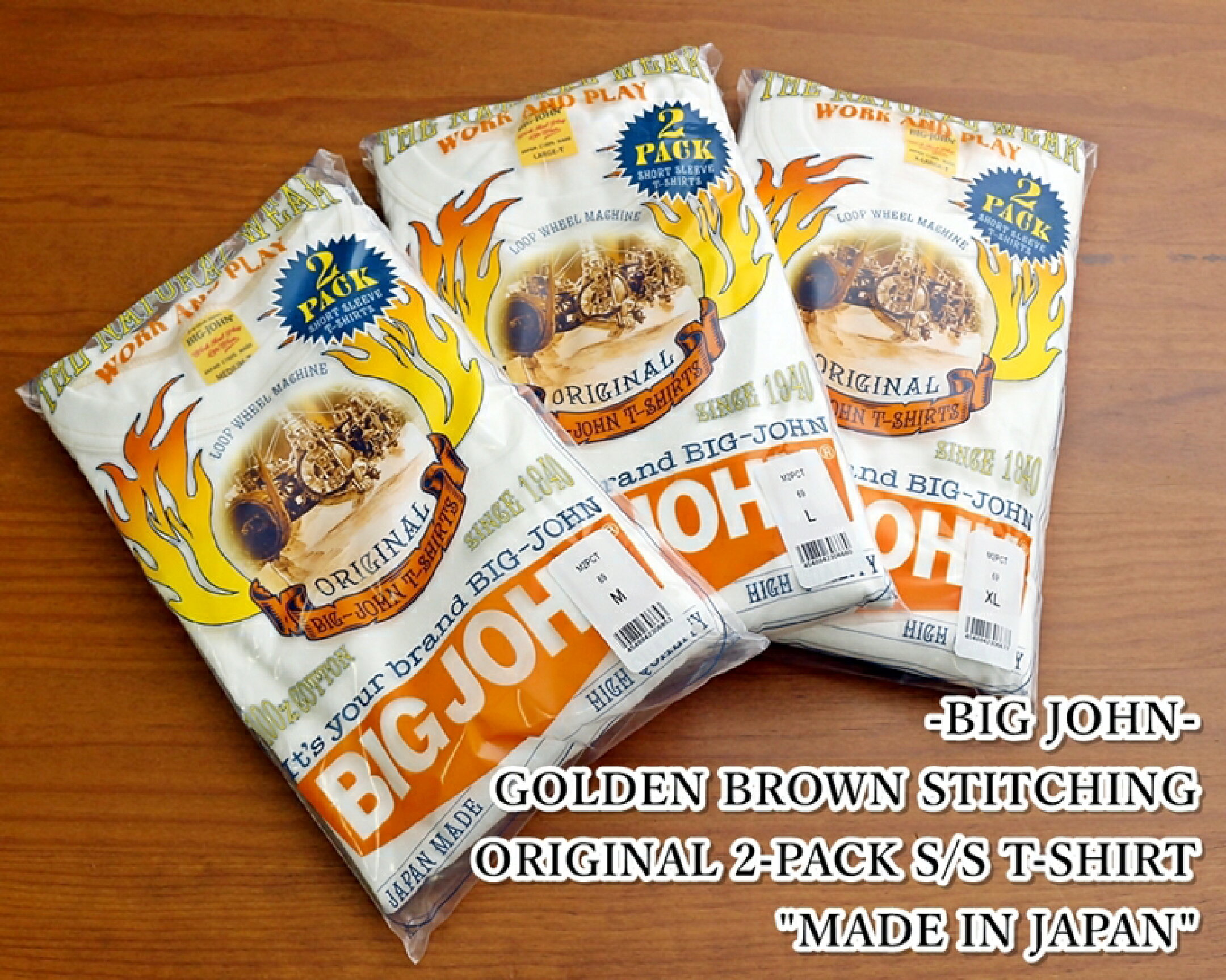 BIG JOHN ビッグジョン パックTシャツ メンズ レディース ブランド 日本製 2枚組 半袖 Tシャツ パックTee 無地 吊り編み 丸胴 金茶色ステッチ バインダーネック ベーシック カットソー インナー カジュアル アメカジ ワーク ミリタリー ナチュラル ホワイト 白 (91-m2pct)