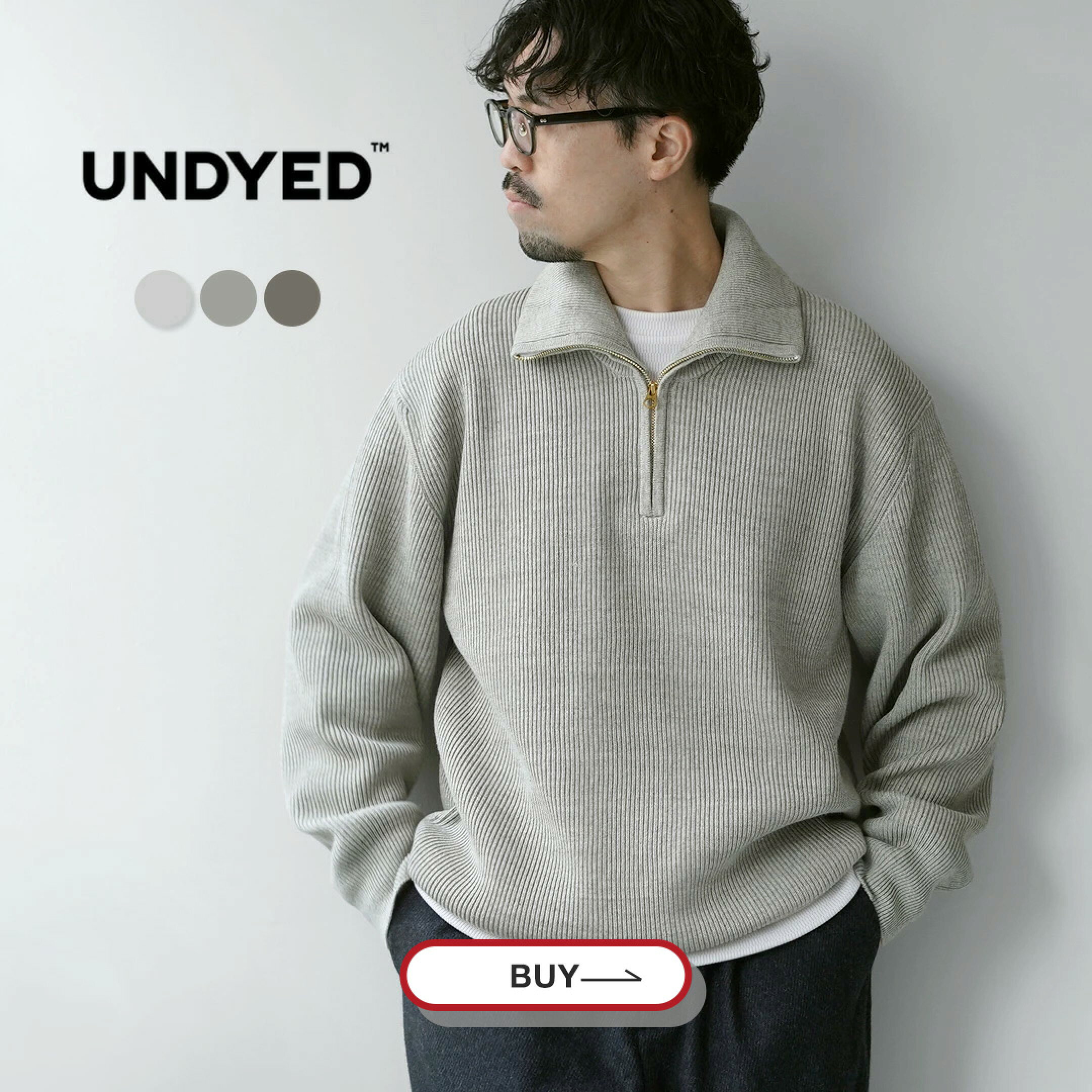 UNDYED(アンダイド) あぜ編み ハーフジップニット オーガニックコットン / メンズ 長袖 ハイネック AZE HALF ZIP KNIT COLORED ORGANIC COTTON