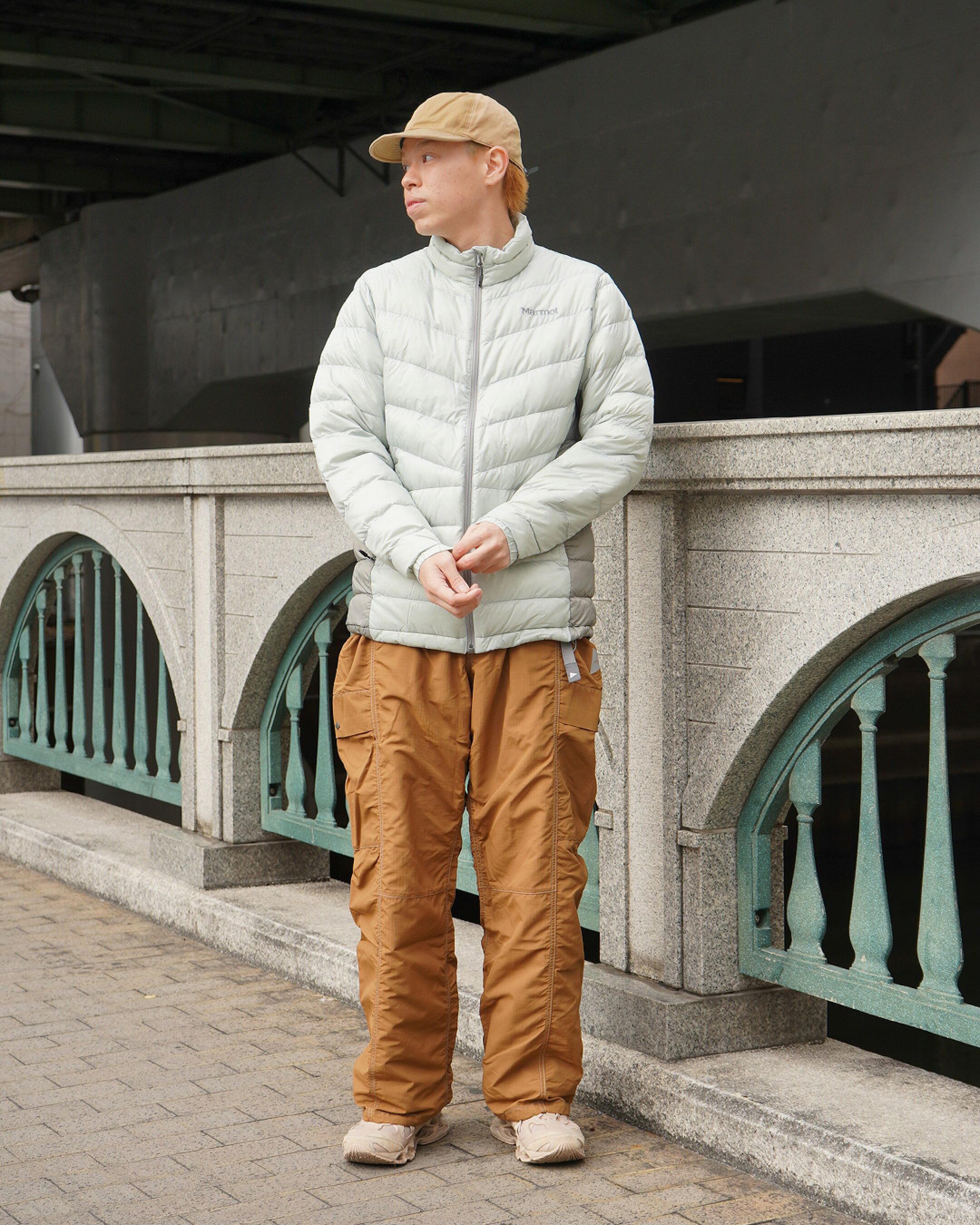 ❚ スタイリングのポイント Marmotのエイブルダウンジャケットを主役に、AND WANDER×GRAMICCIのコラボパンツ、マルチパネルキャップを合わせた、機能性と落ち着きのある雰囲気を両立したスタイリングです。 750フィルパワーの高品質ダウンを使用したジャケットは、軽量ながら十分な保温性を備え、街中でもアウトドアでも快適に着用できます。ボリュームを抑えたシルエットのため、全体のバランスを取りやすく、アクティブな印象になりすぎないのも魅力です。 パンツには、動きやすさと実用性を兼ね備えたボイジャーパンツを合わせることで、コーディネートに機能美をプラス。アウトドア由来のディテールがありながら、タウンユースにも自然に馴染みます。 仕上げに、異素材をバランスよく配置したマルチパネルキャップを取り入れることで、シンプルな配色の中にさりげない表情をプラス。全体を引き締めつつ、細部で個性を感じさせる、汎用性の高いコーディネートです。 ◆着用サイズ (174cm/56㎏) OUTER:L PANTS:L GOODS:F