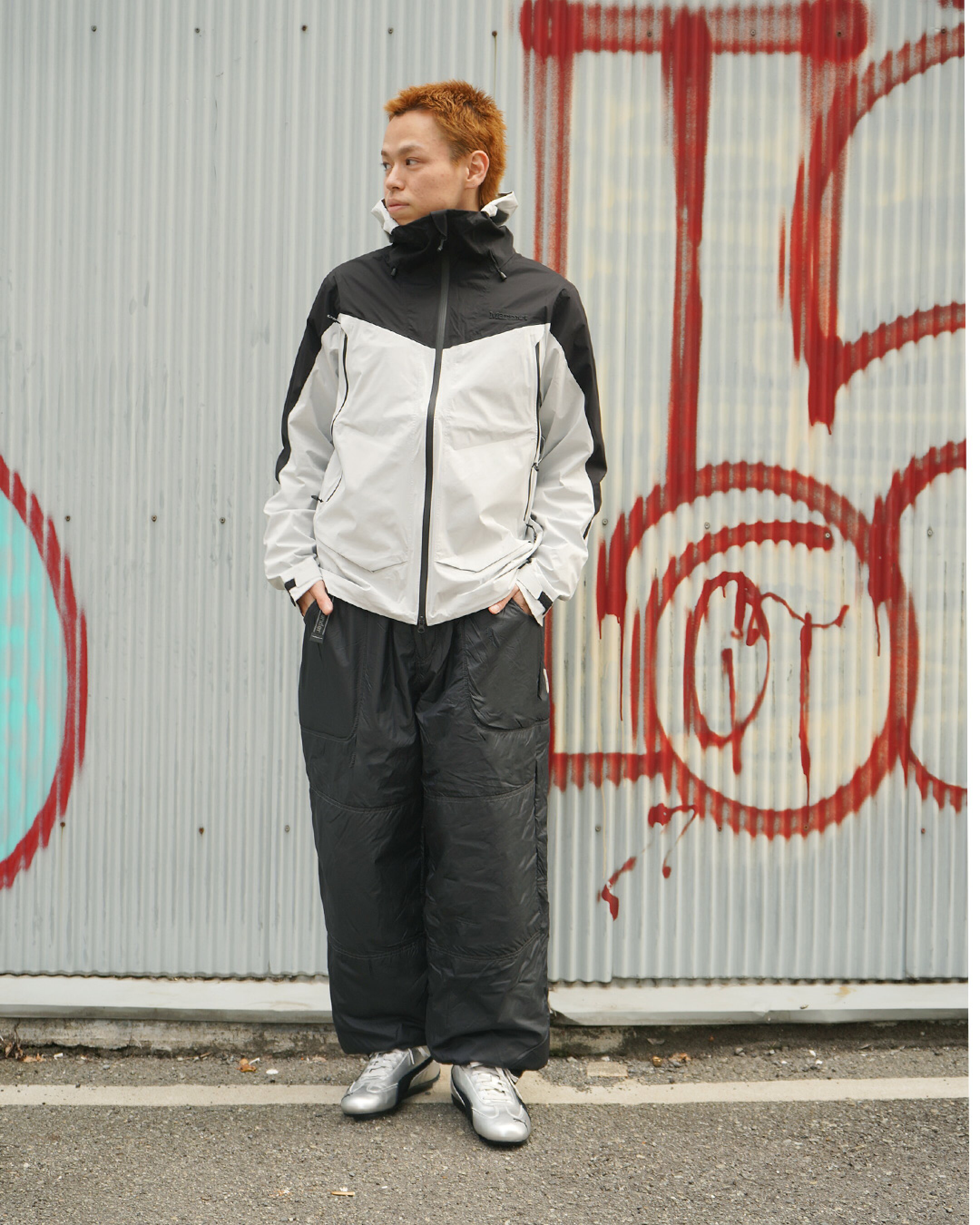 ❚ スタイリングのポイント Pertex Shield Pro素材のシェルジャケットを軸に、AND WANDER×GRAMICCIのコラボパンツ、そしてSPEEDCATを合わせた、機能美が際立つモダンアウトドアスタイルです。 ジャケットは軽量でしなやかな着心地ながら、防水透湿性に優れ、天候やシーンを問わず活躍します。無駄を削ぎ落としたクリーンな印象が、パンツのデザイン性を引き立て、全体を都会的にまとめています。 パンツには、動きやすさと実用性を兼ね備えたボイジャーパンツをセレクト。AND WANDERらしいディテールが加わることで、アウトドア感がありながらも洗練された表情に仕上がっています。 足元には、レーシング由来のシャープなシルエットとシルバーカラーが魅力のSPEEDCATを合わせ、軽快さと程よいエッジをプラス。ジャケットのシルバーカラーをシューズのシルバーで拾ってしまおうと思い合わせました。 シルバーのシューズは比較的派手に思えますが、意外と合わせやすくどんな色のパンツにもモードな雰囲気をプラスしてくれるので、おすすめです。 ◆着用サイズ (174cm/56㎏) OUTER:L PANTS:L SHOES:26.5