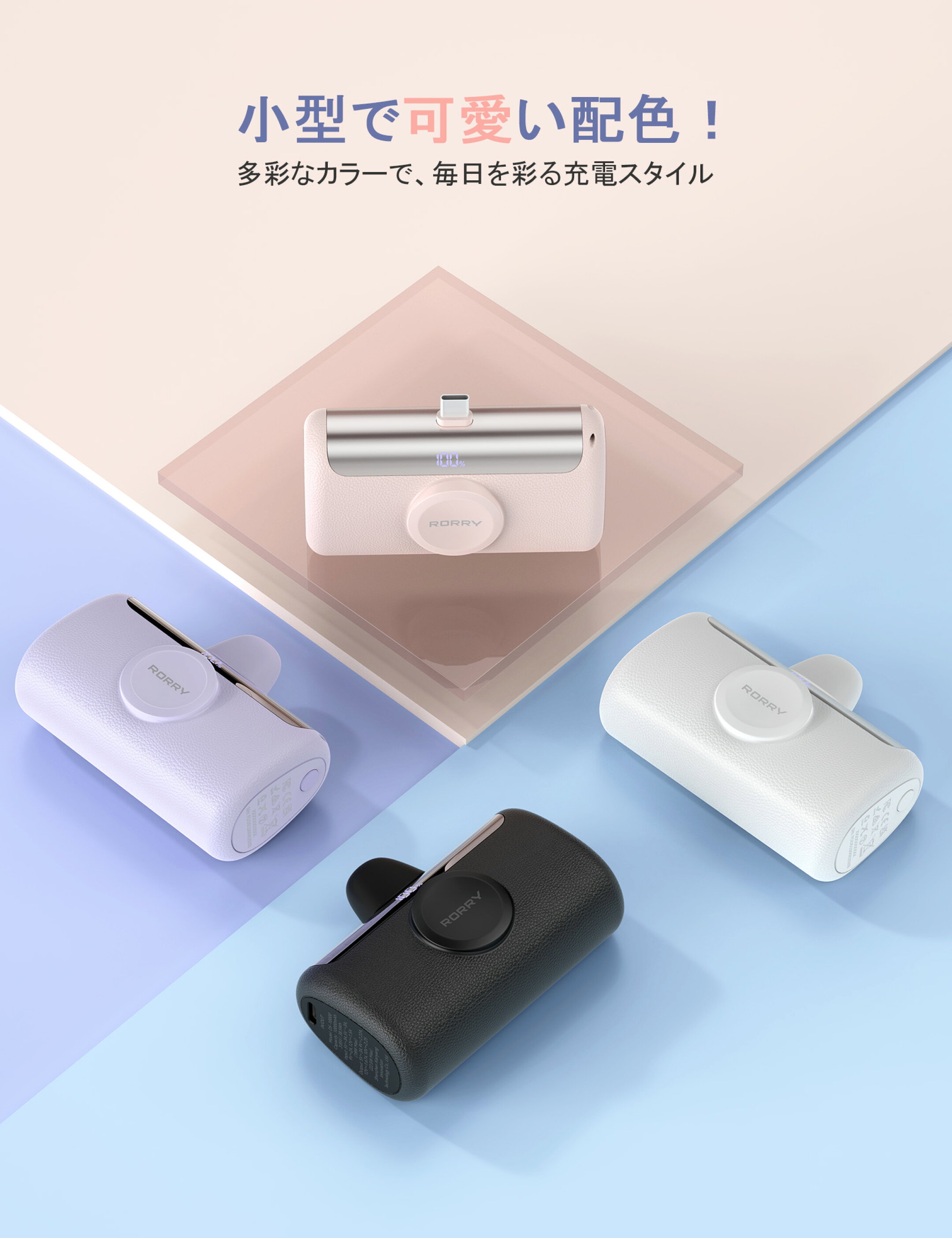 【期間限定セール実施中で 300円クーポン+ポイント10倍】RORRY モバイルバッテリー magsafe対応 apple watch モバイルバッテリー【超小型・マカロン色・リング&スタンド付】5000mAh 3in1ワイヤレス充電器 軽量 小型 iPhone&iWatch同時充電 可愛い マグセーフ充電器 パススル