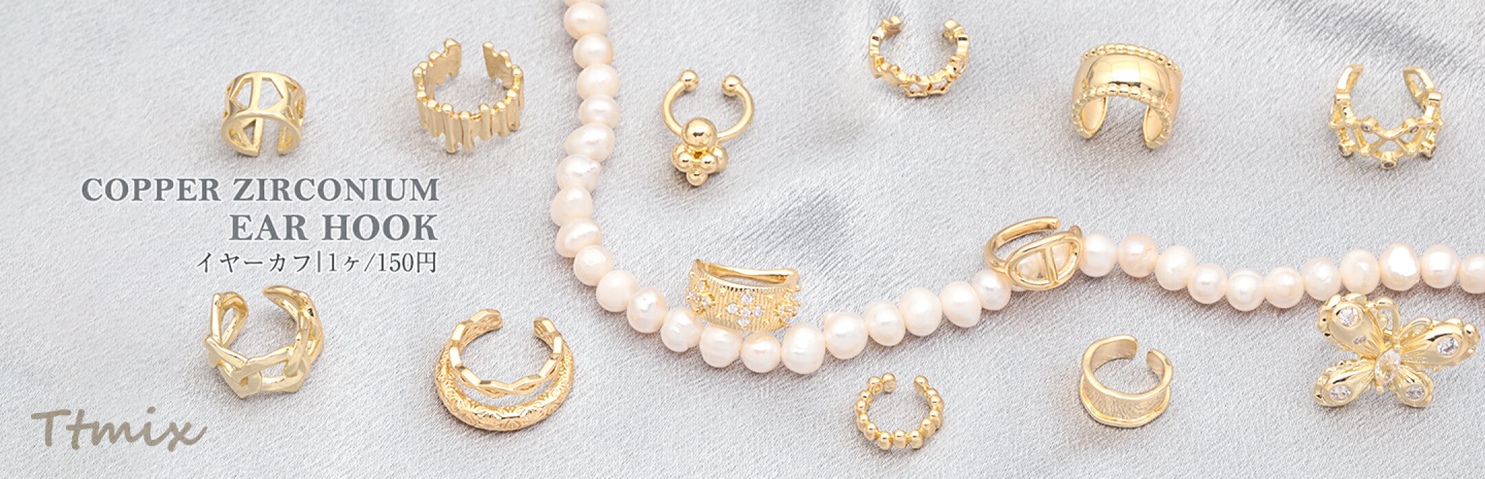 イヤーカフ 花模様 ジルコニア付き ピアスホール不要 片耳 両耳 耳飾り メタルイヤーカフ 約6×15mm(1ヶ)
