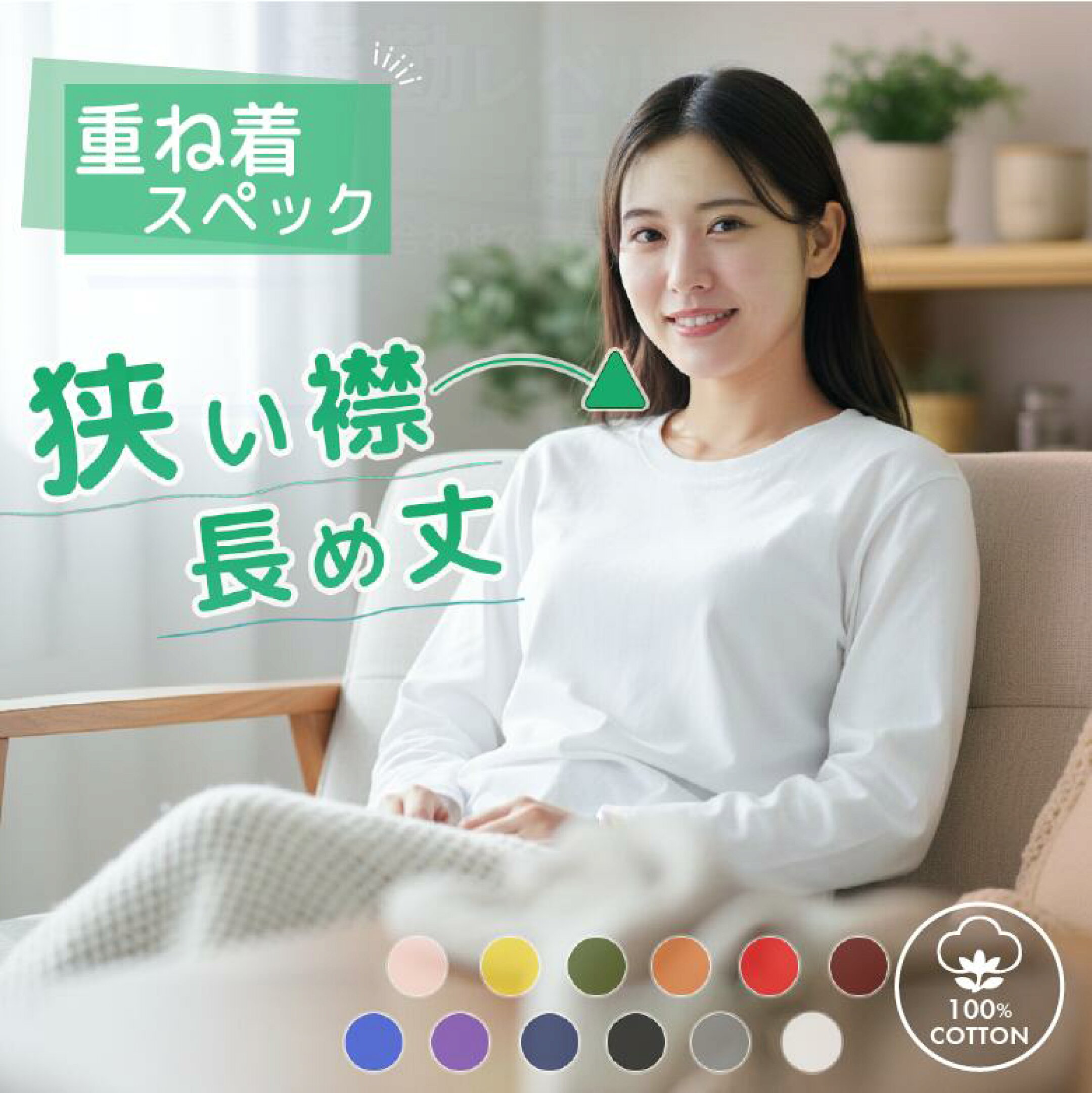 レイヤード インナー ロンt レディース 綿100% 丈長め 重ね着 チラ見せ 長袖tシャツ 白 黒 無地 シンプル 襟ぐり狭め クルーネック 丸首 カットソー トップス 大きめ 大きいサイズ 暖かい ロングtシャツ ロンティー 春秋冬 ろんt スウェットインナー ニットインナー 00102