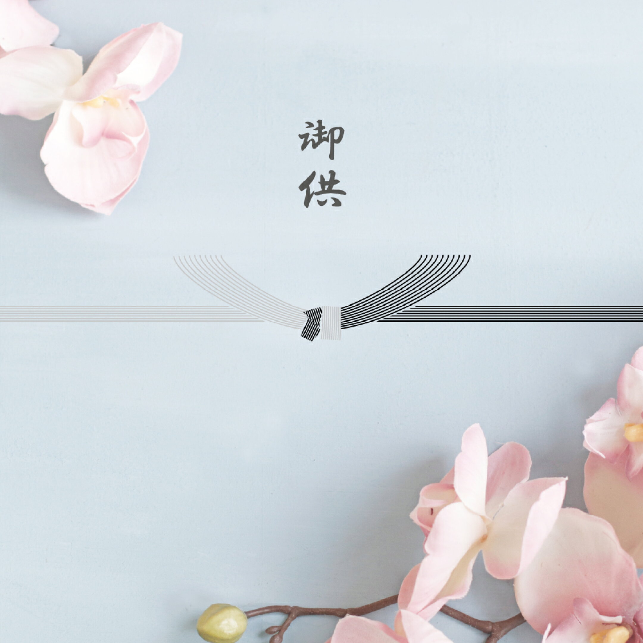 Sakuyaではオリジナルの胡蝶蘭がプリントされた熨斗をご用意しております。「御供」の熨斗をお選びのご注文には、こちらの上質な熨斗をおかけし、お名前をお入れした上で「内のし」にて包装紙でお包みいたします。 「梱包が過剰だと、お相手様にご負担がかかってしまう」というお声にもお応えし、段ボールは使用せず緩衝材(プチプチ)にてお包みした包装を導入しております。 お悔やみの気持ちをお伝えしつつも、お受け取りのご負担を最小限にした喪中お見舞いはいかがですか。