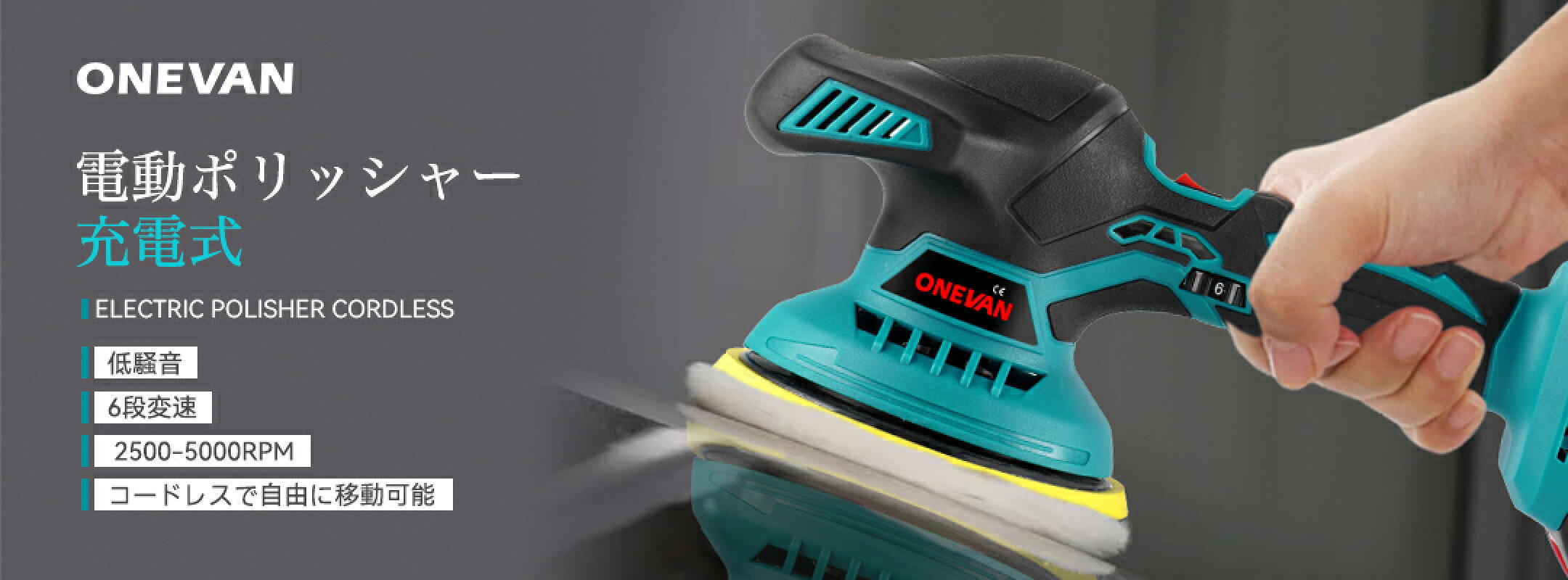 【楽天1位】電動ポリッシャー 車用ポリッシャー 6段変速 ポリッシャー コードレス 150mmパッド 2500-5000RPM 研磨&ワックス対応 操作簡単 充電式ポリッシャー 車磨き・油膜・うろこ取り・鏡面磨きに 車・バイク・家具対応 ワックス仕上げ対応 車のボディ研磨 持ち運び便利