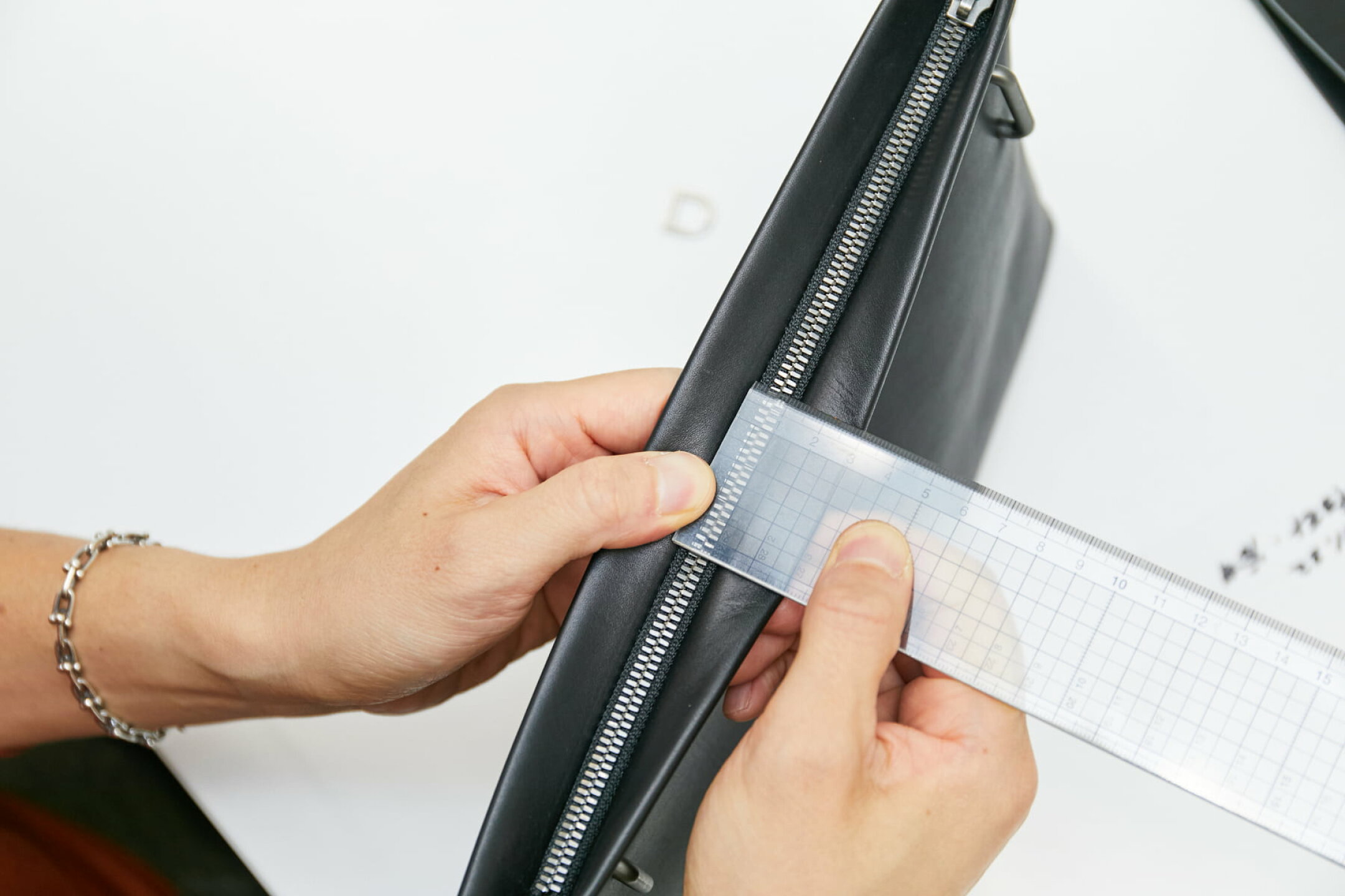 使用感に直結するファスナーには、YKK社の最高級ファスナー「EXCELLA®」を採用。 エレメント1つ1つに入念な磨きをかけ、美しさと滑らかな手触りを追求した高級感漂うファスナーです。角度によって、ほのかにキラキラと輝くのもまた、気分を上げてくれます。 この素材・この佇まいにふさわしい、隠れたこだわりの1つです。