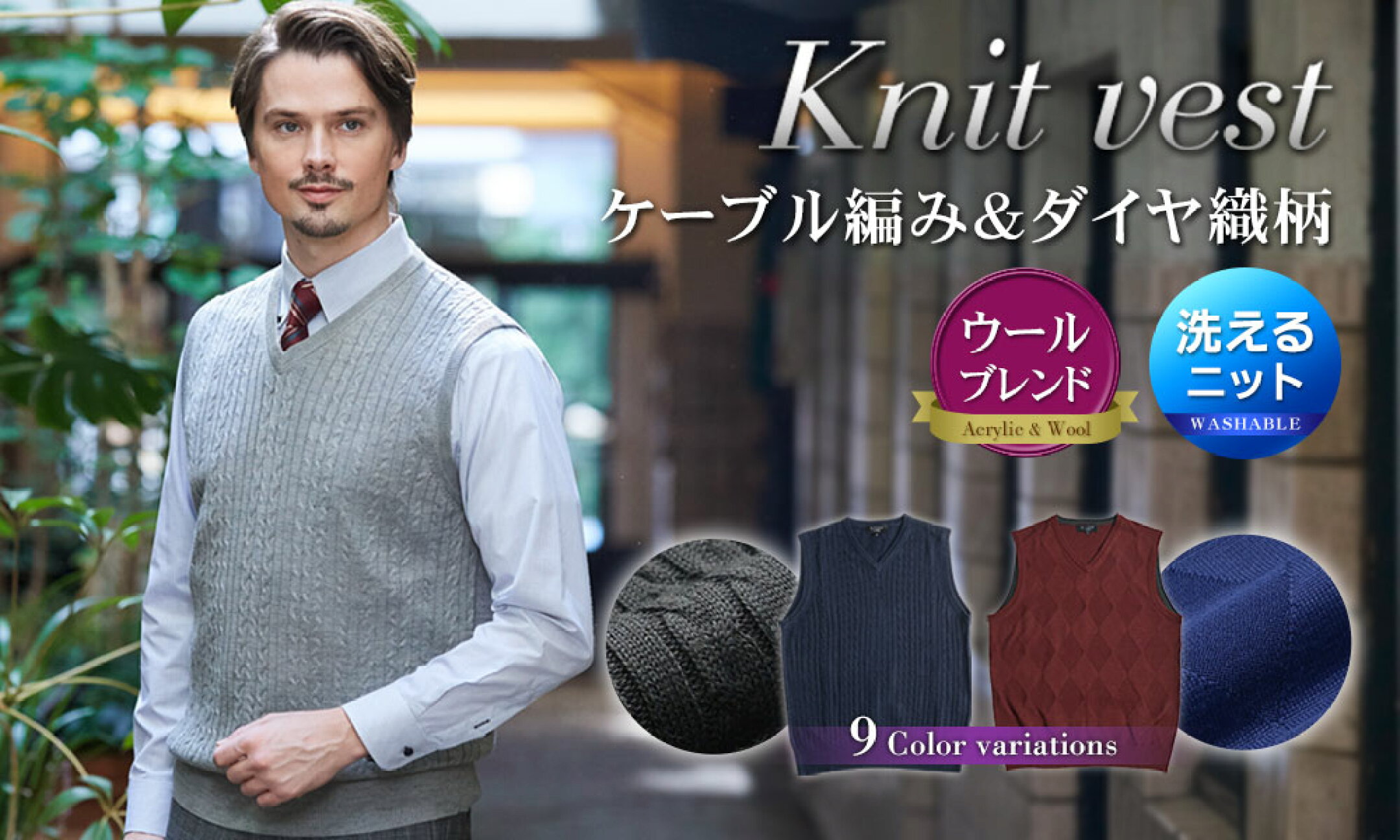 【500円OFFクーポンあり】 ニットベスト メンズ ニット Vネック 無地 ボタンフロント ウォッシャブル ビジネス セーター 洗える 春秋冬 ハイゲージニット 「メール便送料無料」