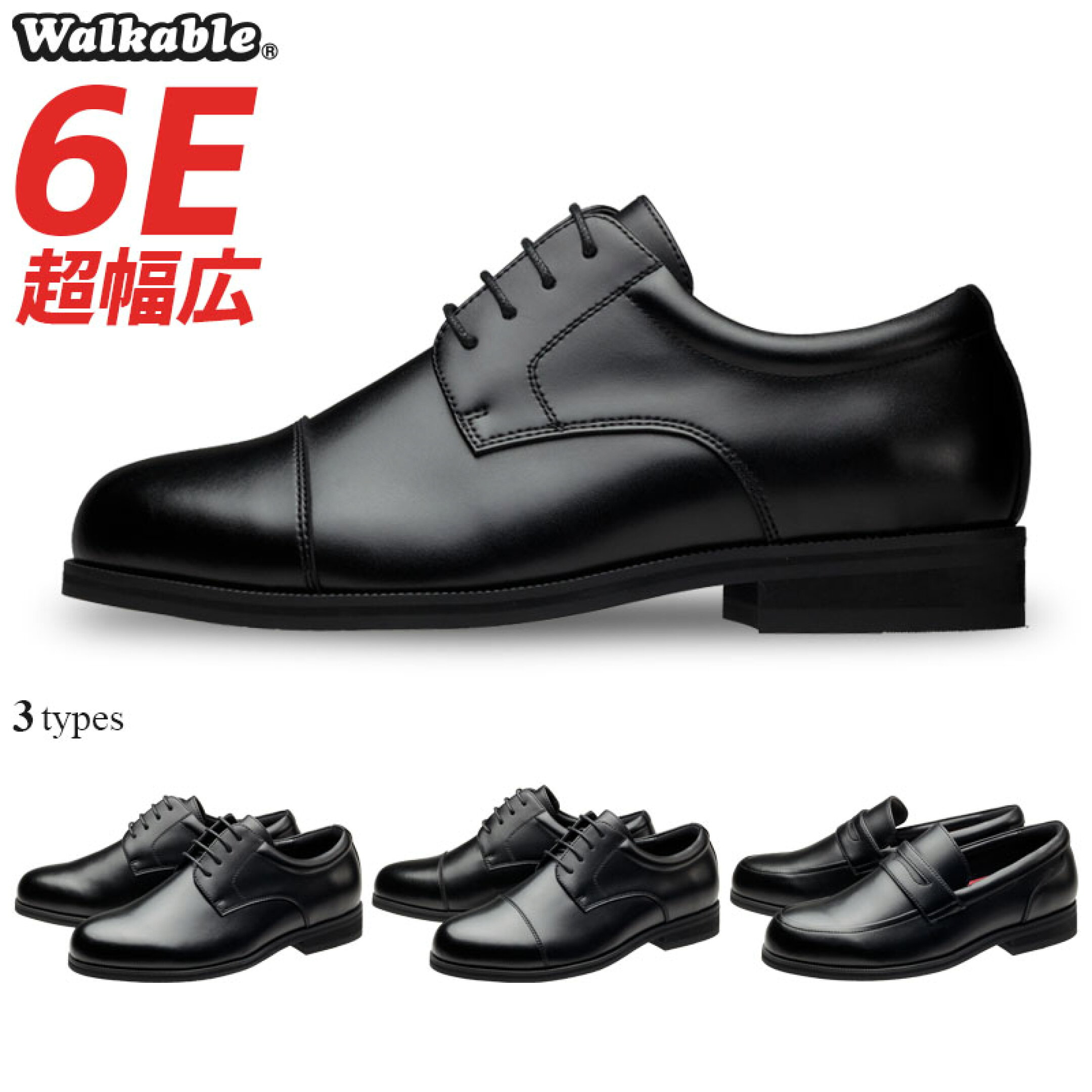ビジネスシューズ メンズ 幅広 6E 超幅広 紳士靴 甲高 大きいサイズ ストレートチップ プレーントゥ ローファー 黒 ブラック 全3種類 25.5cm 26cm 26.5cm 27cm 27.5cm 28cm 29cm 30cm ウォーカブル 2091 2092 2093