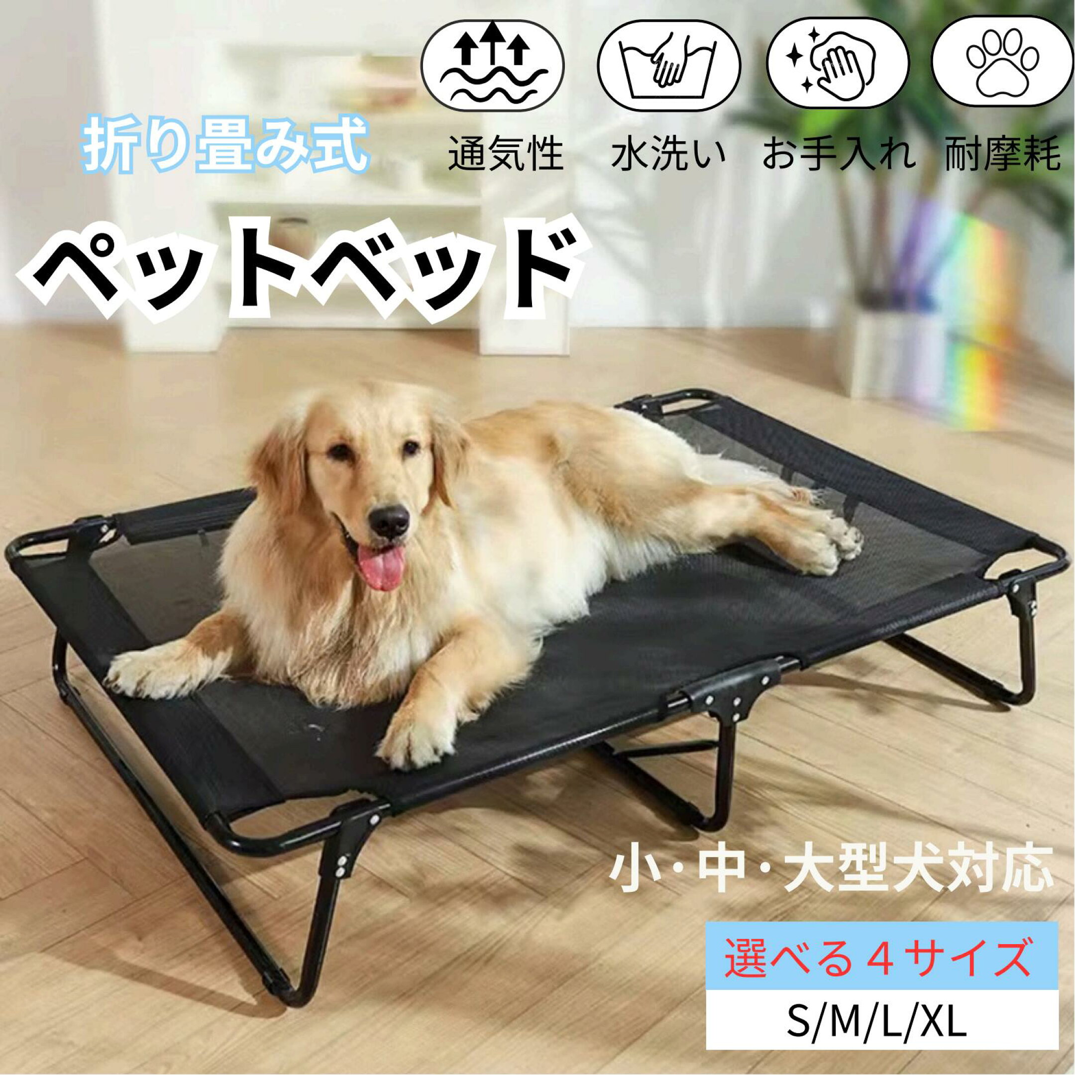 ペットベッド ステンレス 足つき 丈夫 洗える シンプル 無地 犬用 4サイズ s m L XL 大型犬 中型犬 小型犬 犬猫兼用 メッシュ オールシーズン 長持ち お手入れ簡単 テキスタイル生地 通気性抜群 ベッド 送料無料
